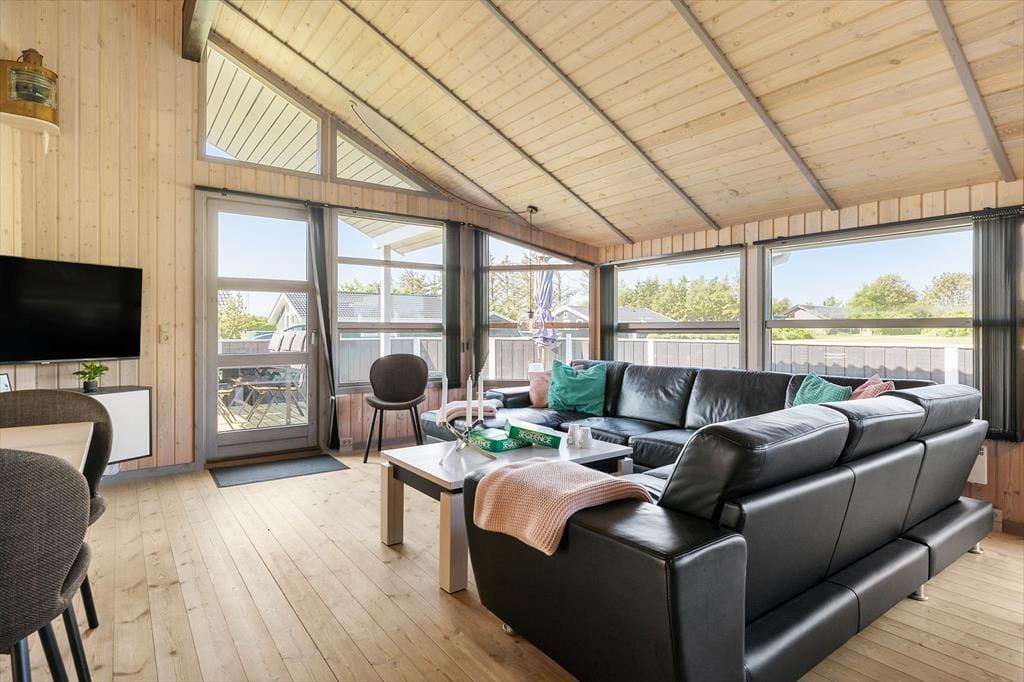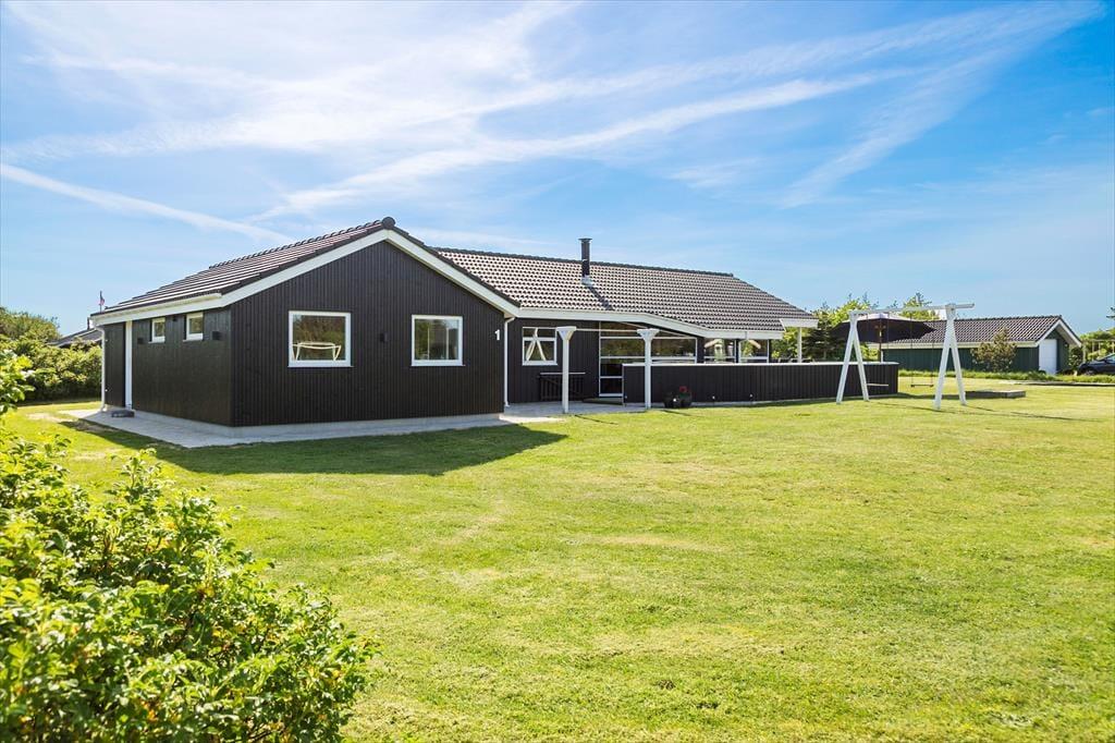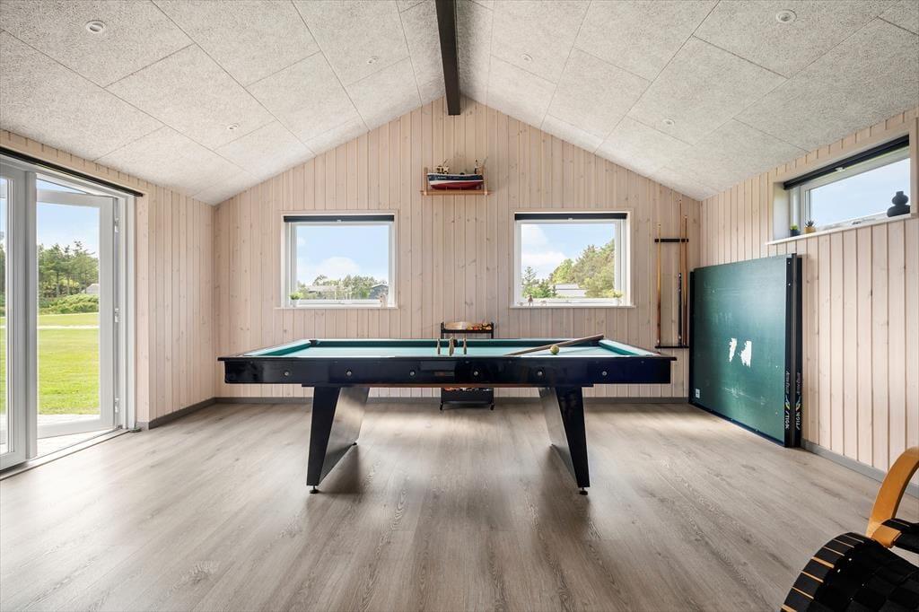 Hvis du skal holde ferie med børn, kunne dette rummelige sommerhus i Lønstrup meget vel være det helt rigtige match! Her er både trampolin, gynge sandkasse og aktivitetsrum – og der er kun en kort gåtur ned til stranden og den hyggelige ferieby Lønstrup.