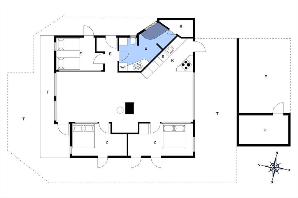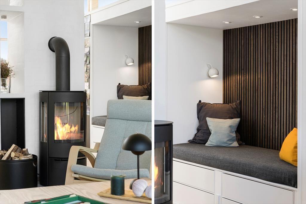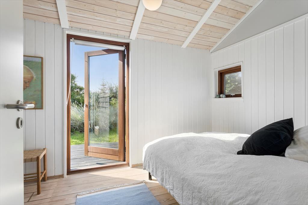 Med store vinduer, loft til kip og lyse farvetoner er der en herlig atmosfære inden døre, og du kan hurtigt føle dig hjemme i de velindrettede rum. For eksempel er det herligt at kunne slænge sig i stuens sofaafdeling, når der er ild i brændeovnen og varm kaffe i koppen – hvis det altså ikke er badeværelsets spabad og sauna, der sørger for at få dig helt ned i tempo. Det åbne køkken er en god arbejdsstation, og her kan I sagtens være flere om at stå for madlavningen, mens spisebordet er det helt rette sted at mødes, når måltidet står klar. Soveværelser er der tre af, så det er muligt at være op til seks personer, der nyder ferien sammen.