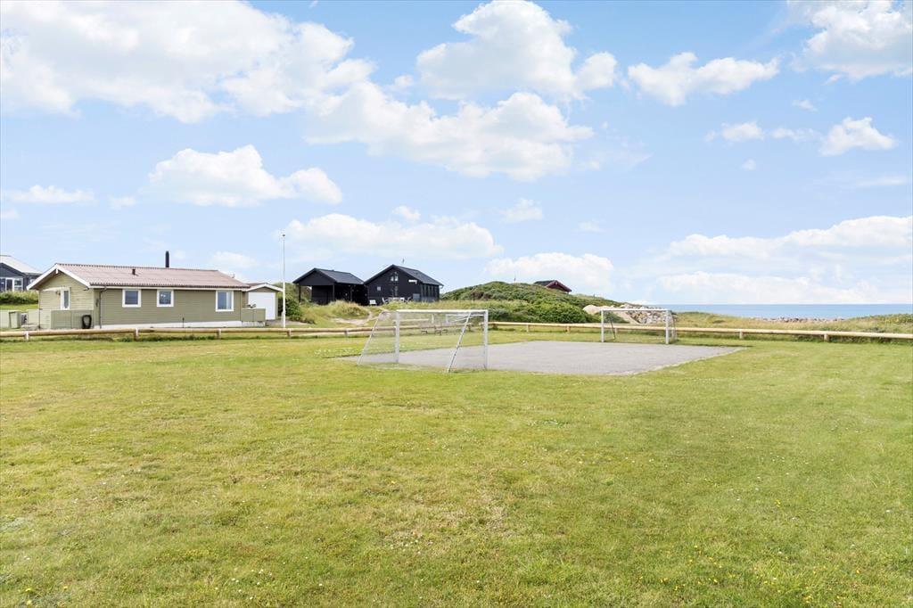 Sommerhusets udearealer indbyder til driverliv hele dagen lang, for du kan starte med at drikke kaffe og læse avis på den østvendte terrasse, mens udsigtsterrassen mod vest er det helt rette sted at være, når du vil nyde både nærheden til havet og solens sidste stråler. Grunden byder på en god græsplæne , der breder sig rundt om huset – men hvis du vil spille havespil, drible med bolde og lege med børnene, kan I også smutte over på den anden side af vejen, hvor I finder et hyggeligt og grønt fællesareal med boldbane såvel som velanlagte petanquebaner.
