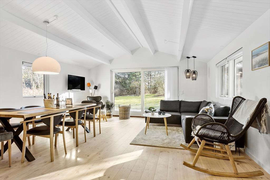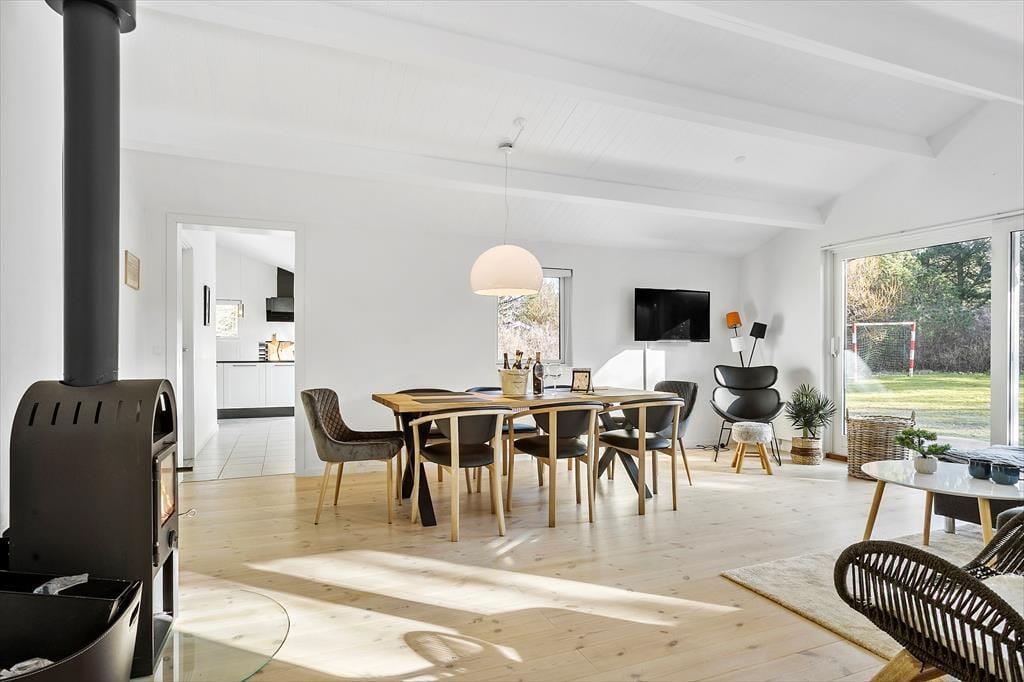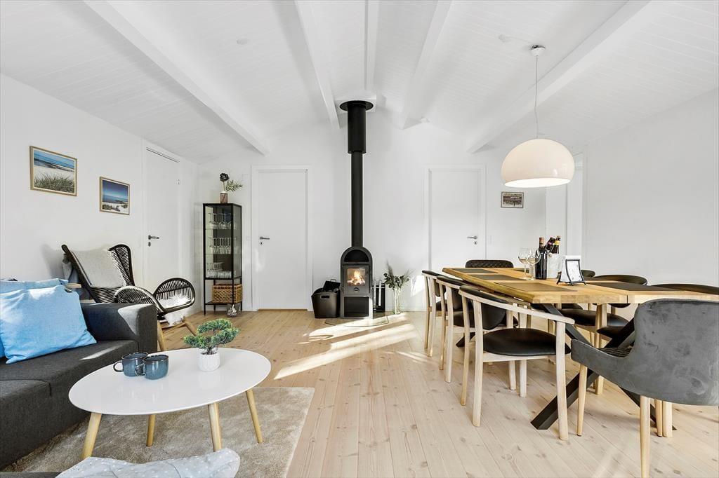 Inden døre bliver du budt velkommen af en lys og luftig atmosfære, hvor store vinduespartier skaber en smuk forbindelse mellem inde og ude. Sommerhuset er indrettet med sans for detaljer, og den hyggelige stue inviterer til afslapning foran brændeovnen på kølige dage. Det åbne køkken lægger op til social madlavning, hvor du kan nyde selskabet af familien, mens du tilbereder et lækkert måltid. De komfortable soveværelser sikrer en god nattesøvn, så du er frisk og veludhvilet til endnu en dag i Lønstrups naturskønne omgivelser.