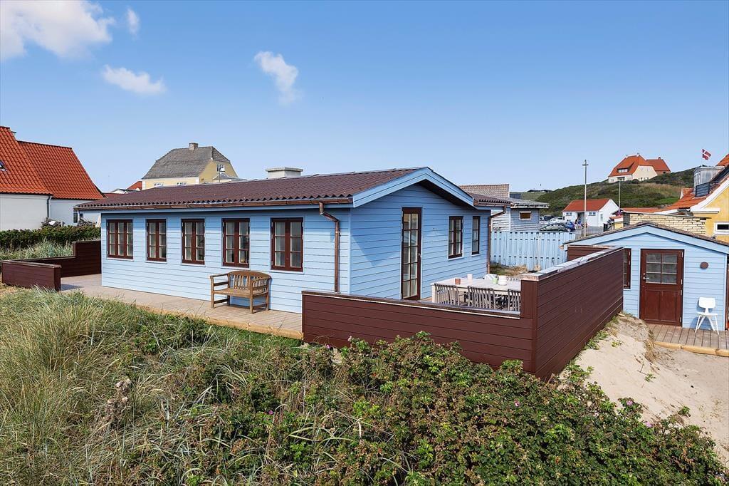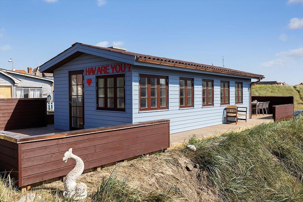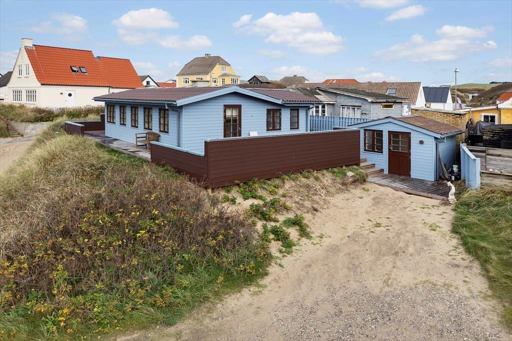 Hyggeligt feriehus i klitterne med byliv i baghaven og udsigt ud over havet. Her er der mulighed for at læse og skrive, grille på terrassen, morgenmade i havet og slutte dagen af i sauna med udsigt. Her er plads til en lille familie eller dig og din eneste ene.