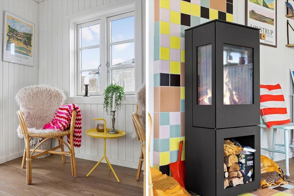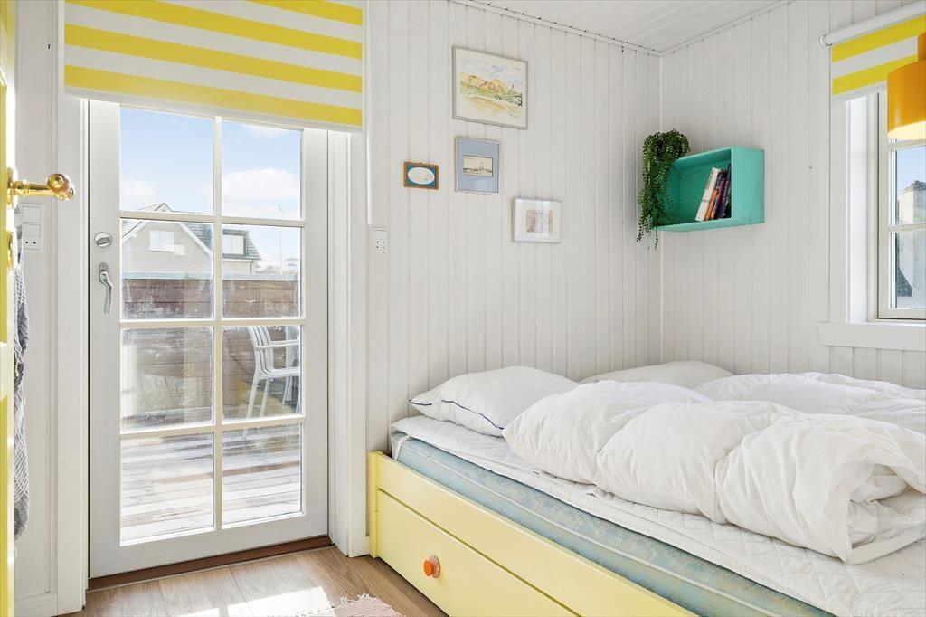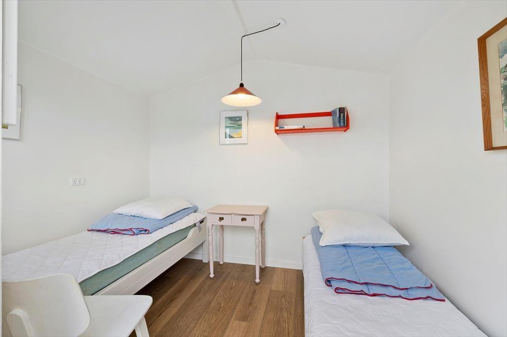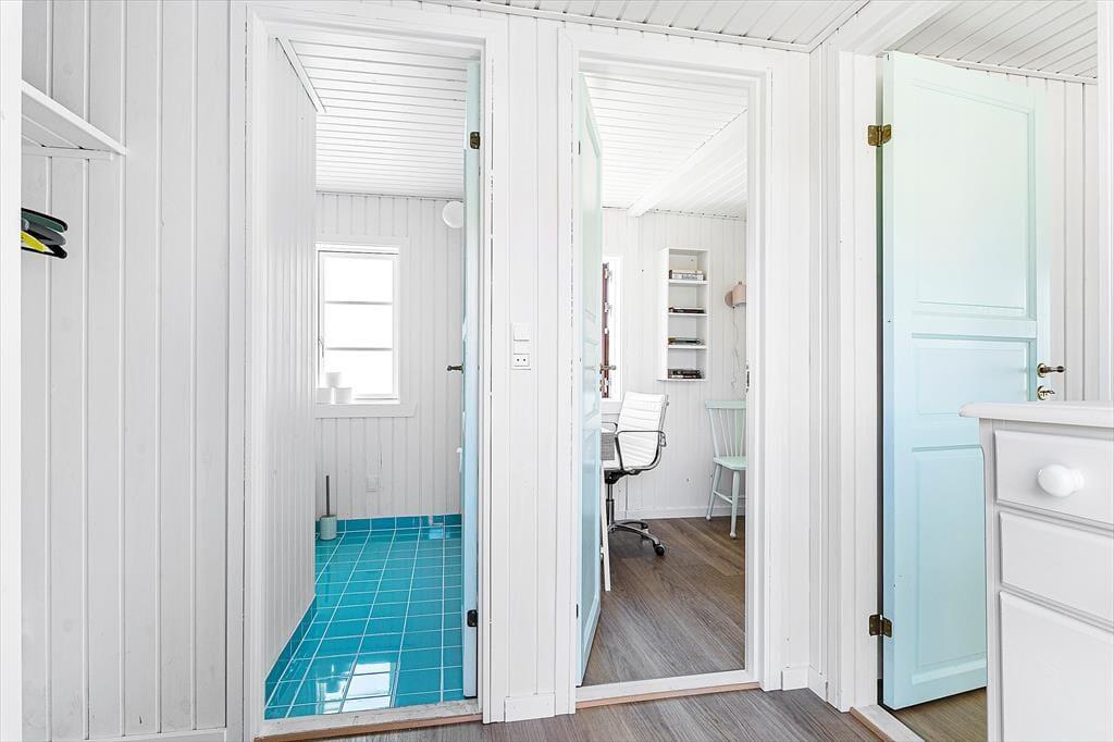 Verden er i farver - også huset her, der virker indbydende og lyst. Og føl dig endelig hjemme. Tag bad i det blå - også indenfor, hvor det lille badeværelse spejler sig i havet. Den åbne opholdsafdeling med stue og køkken i ét inviterer til nærvær og hyggestunder, og på kolde dage hygger du dig med brændeovnens knitren. Her er fint soveværelse med plads til at ligge tæt, og husets andet værelse er indrettet til arbejdsværelse, hvor husets ejere, som begge er forfattere, skriver bøger, når de selv bruger stedet. I det værelse er der indrettet arbejdsplads som forhåbentlig kan inspirere alle der bruger huset til at udkomme kreativt. Huset er i farver, men roen er det første, man får øje på. Her er der plads til at være sig selv - og hinanden - nærmest.
