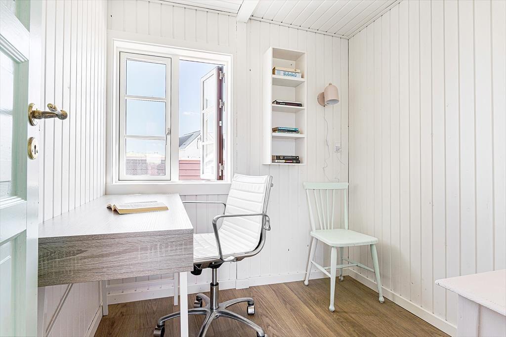 Her er også plads til at arbejde i inspirerende omgivelser eller til at samle dine kære nære til grillhygge på terrassen. På hæsblæsende dage tænder I op i pejsen og nyder havet, der bruser og varmen, der breder sig i stuen.