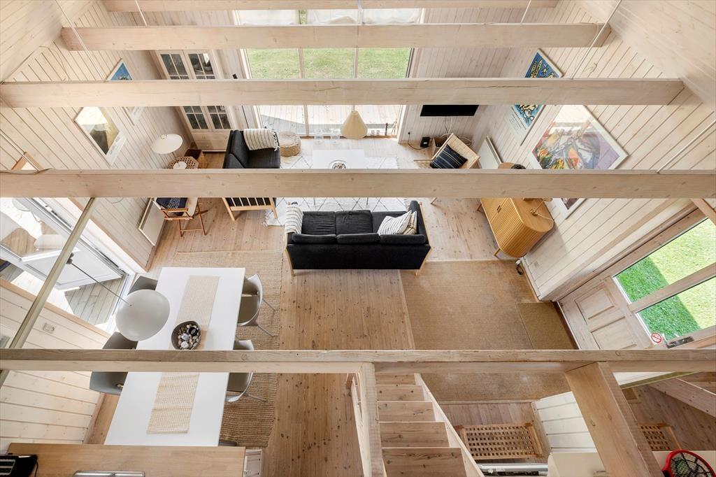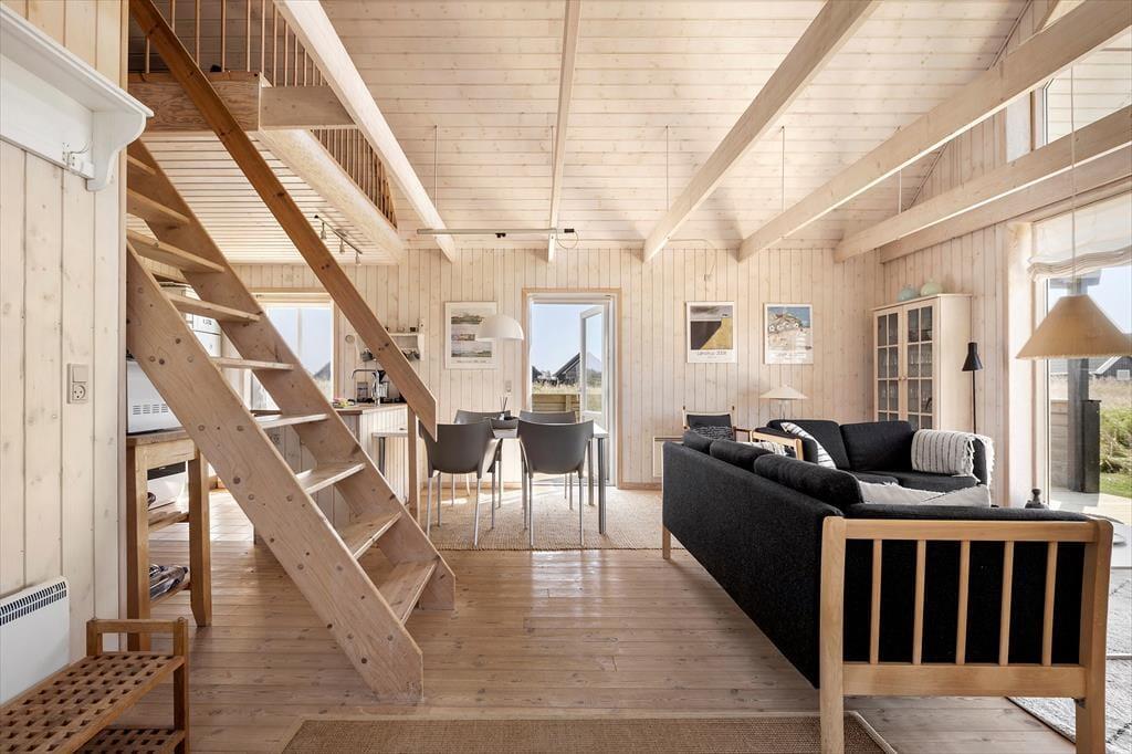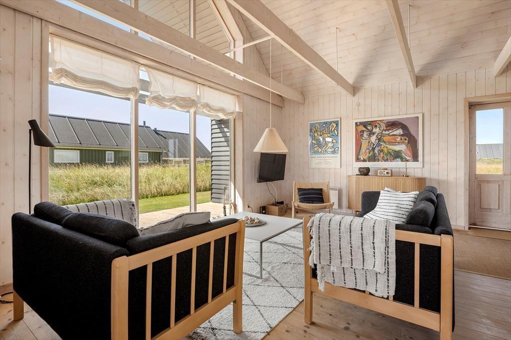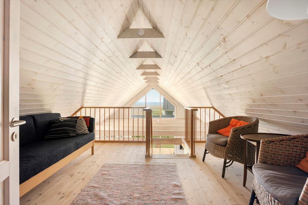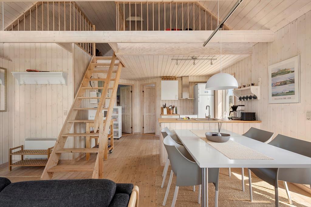 Det første, der møder dig, når du træder ind ad døren, er det lyse og åbne indtryk, der præger hele boligen. Indretningen er gennemført hyggelig med en afslappet feriestemning, og vinduerne i stuen trækker ikke bare dagslyset helt ind i rummet – de giver dig også et skønt kig til havet, som ligger lige i nærheden. Her er det nemt at slå sig ned med en kop kaffe og lade blikket vandre mod horisonten, mens tankerne flyver frit. Det åbne opholdsrum skaber en god ramme for både nærvær og samtaler, og du vil hurtigt mærke, hvordan roen sænker sig, når I samles her efter en dag i det fri. Uanset om du er til rolige morgener med morgenmad og havudsigt eller spil og snak omkring spisebordet om aftenen, lægger lejligheden op til kvalitetstid i afslappede rammer.