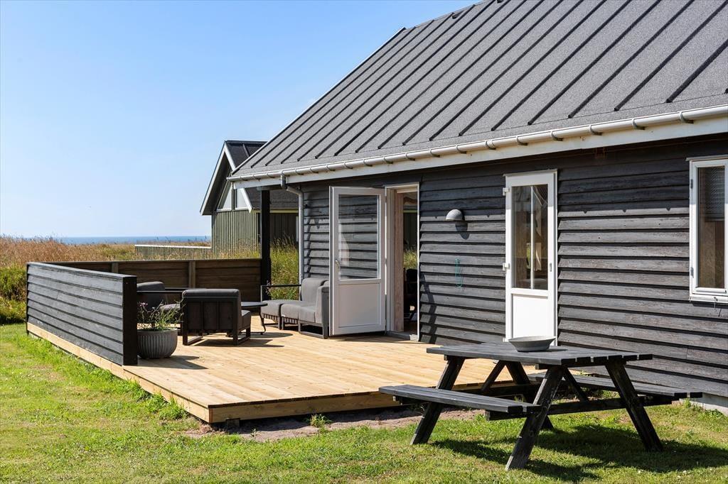 Udenfor venter en stor, grøn have med plads til både leg og afslapning. Måske har børnene lyst til at løbe rundt og spille bold, mens de voksne nyder solen i liggestolene? Terrassen er rummelig og veldisponeret, så du nemt kan finde din favoritplads – hvad enten du foretrækker at mærke solens varme eller bare slappe af med en god bog i fred og ro. Med udsigten til havet som kulisse kan I lade feriedagene flyde i et langsomt tempo og måske slutte dagen af med et glas vin og kig til solnedgangen fra terrassen. Det er ferieidyl på første række – og når mørket falder på, er det svært ikke at glæde sig til endnu en dag her.