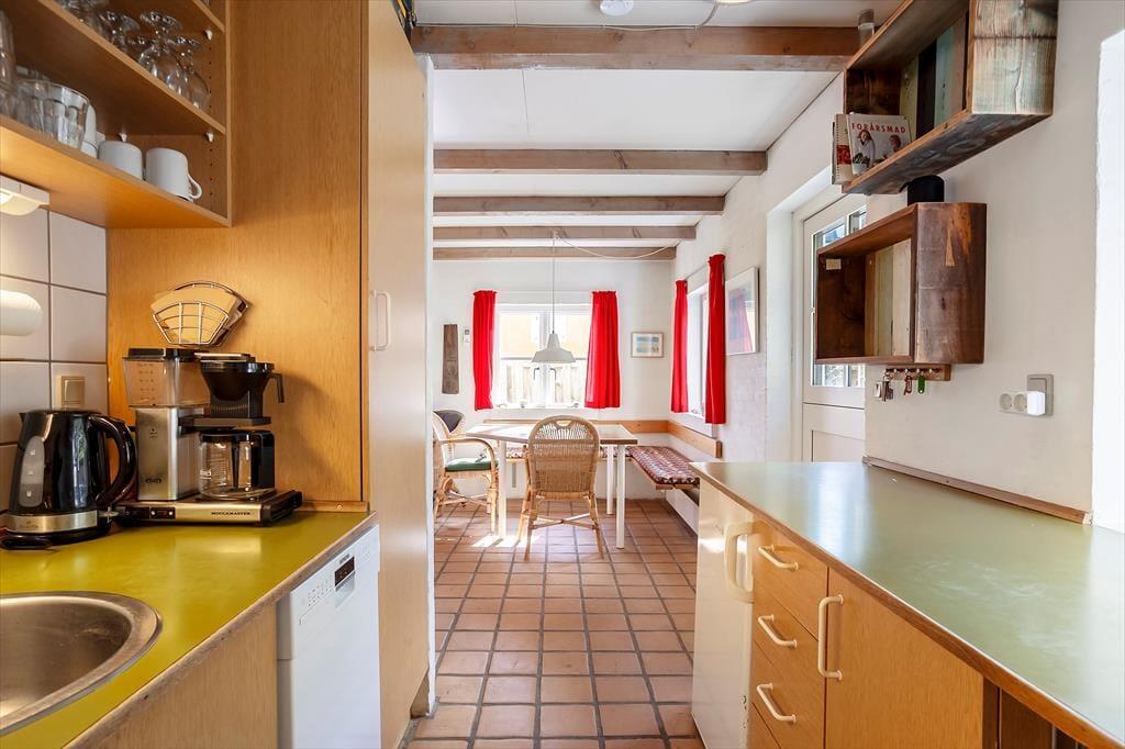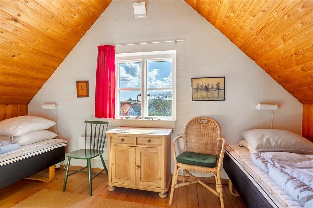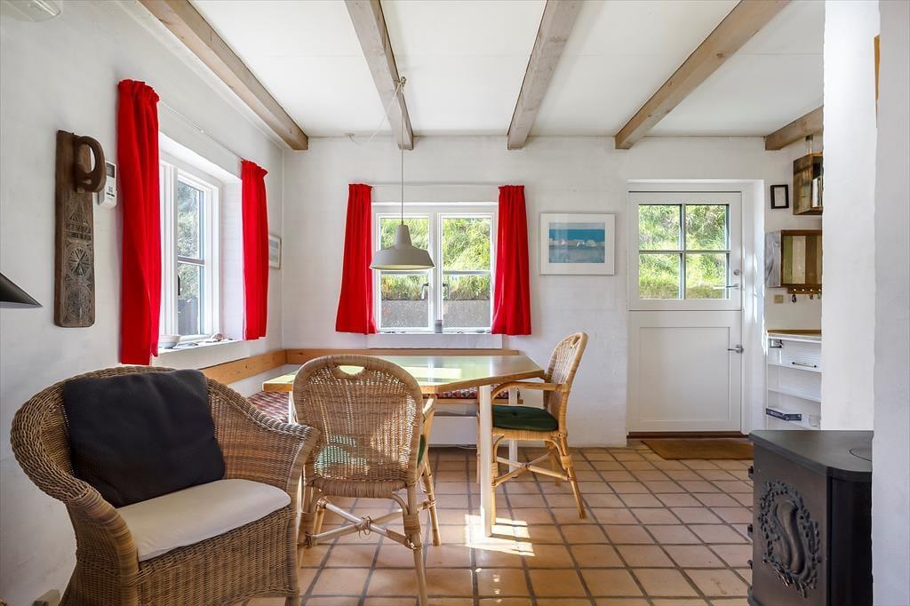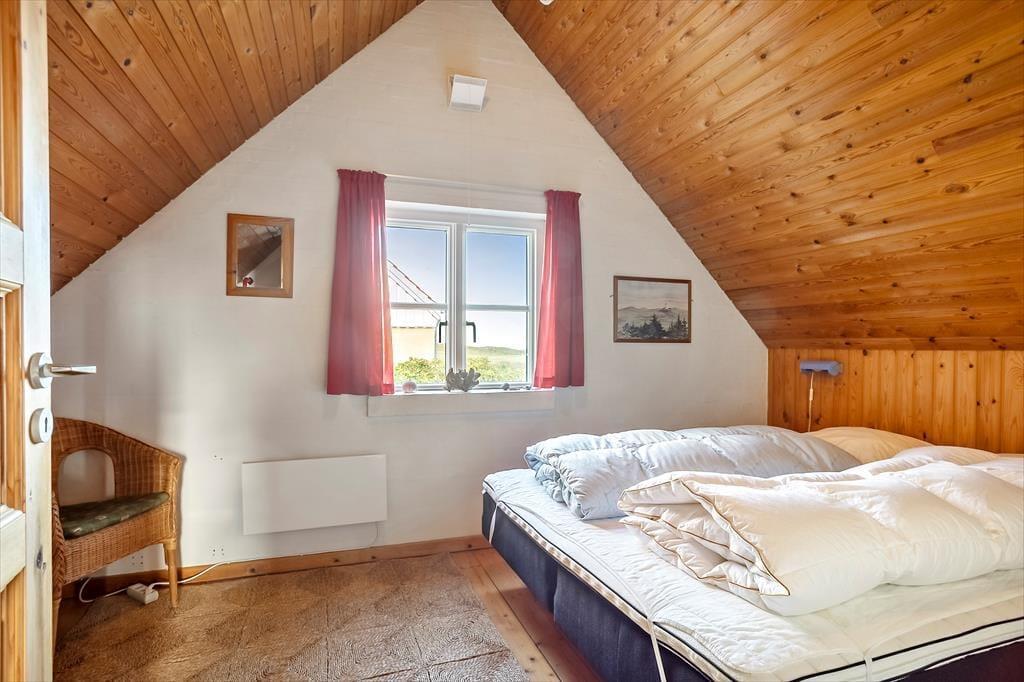 Indendørs byder sommerhuset sig til med en rustik og hyggelig indretning, hvor træværk og varme farver skaber en afslappet atmosfære. Opholdsrummet har en brændeovn, der spreder både varme og ægte feriestemning, når ilden knitrer i baggrunden på kølige dage. Samtidig sørger en moderne varmepumpe for et behageligt indeklima, uanset årstid. Husets to plan giver dig mulighed for at nyde havkigget fra første sal, og det er svært ikke at lade blikket og tankerne vandre, når du står her og ser Vesterhavets blå horisont. Overalt fornemmes en hjemlig charme, som inviterer til at læne sig tilbage og nyde ferien i fulde drag.