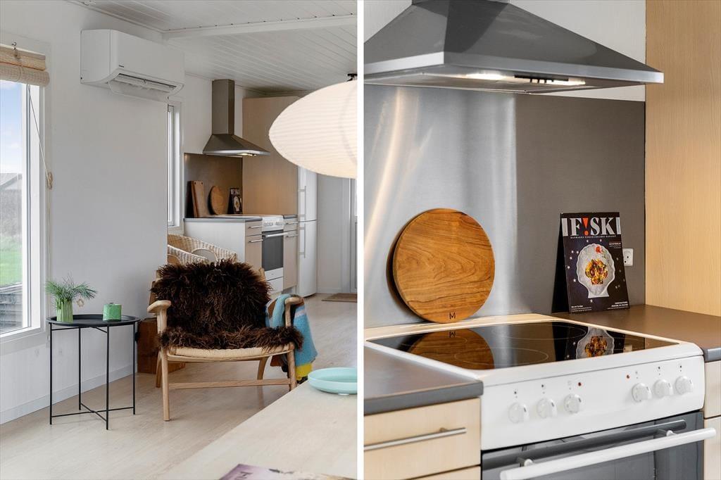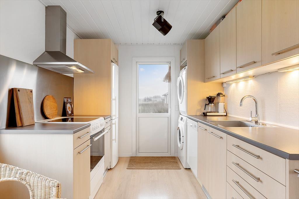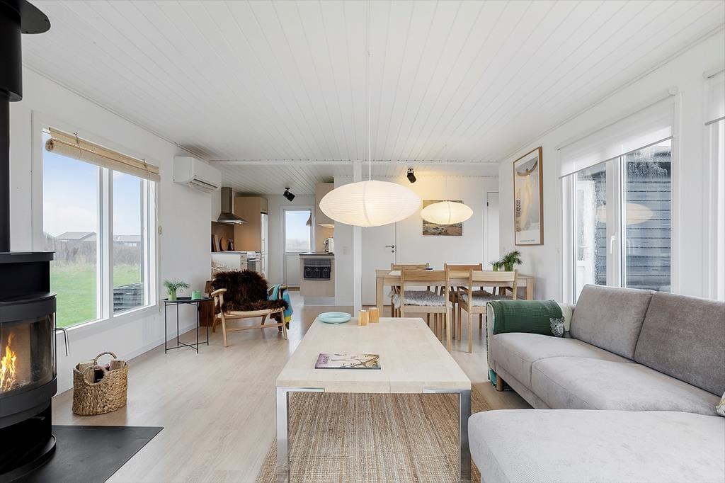 Sommerhus i Lønstrup Strand og By, Nordjylland, med plads til 3 voksne. Der er en hyggelig indretning med bl.a. brændeovn, og du finder desuden vaskemaskine, opvaskemaskine og tørretumbler i boligen.