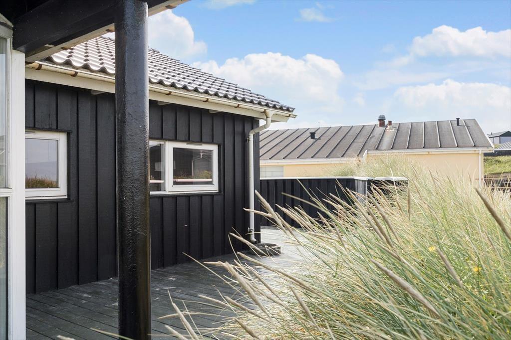 Den tilhørende grund er ikke stor, til gengæld har man adgang til hele Lønstrup Strand lige nedenfor huset. Der er dog anlagt en smal terrasse rundt om en del af huset, og med udgang fra stuen et større areal med plads til havemøbler, liggestole og grill. Her kan man se solen gå ned i Vesterhavet og få det maksimale ud af de lange lune sommeraftener.