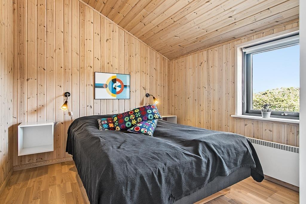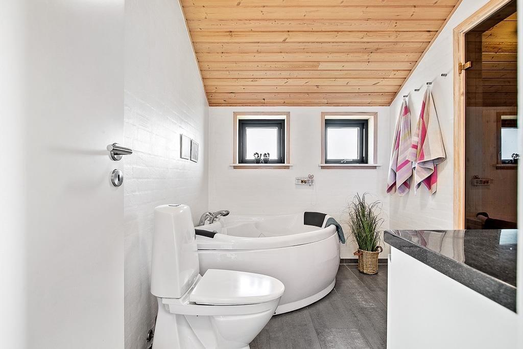 Velkommen til et skønt sommerhus med alt, hvad der er nødvendigt for en vellykket og afslappende ferie: hyggelig og smagfuld indretning, velfungerende hårde hvidevarer, god plads og praktisk opdeling med ét stort åbent opholdsrum, 3 værelser og to badeværelser. Det ene badeværelse har spa og sauna, så sommerhuset også har et strejf af luksus over sig. Her er helt ideelt til 2 par, som rejser sammen, men også for en familie med større børn,der kan hygge sig i fred og ro på den superskønne hems med to madrasser og tv; en lille hule hvor det hurtige bredbånd nok skal komme i anvendelse! Derudover er der en fin brændeovn i huset, som giver dejlig varme på kolde dage efter en frisk gåtur langs strandkanten. Et moderne og velfungerende sommerhus, som bare må opleves!