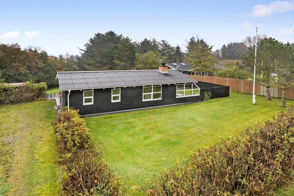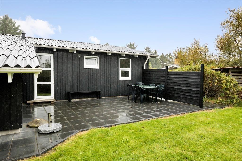 Sommerhuset ligger på en stor, skøn havegrund med masser af plads til at lege, spille bold og løbe rundt. Der er lækre terrasser på flere sider af huset, specielt skal fremhæves den delvist overdækkede, som ligger i forlængelse af stuen; her er helt oplagt og ideelt til grillmåltider og et godt glas vin på de lange, lune aftener.