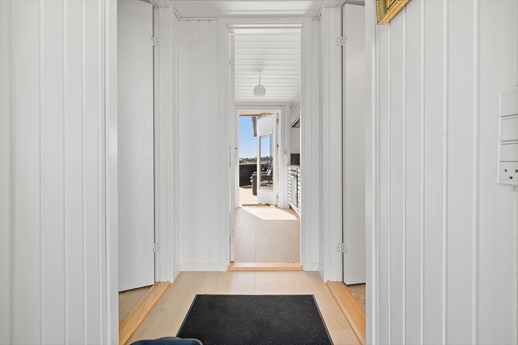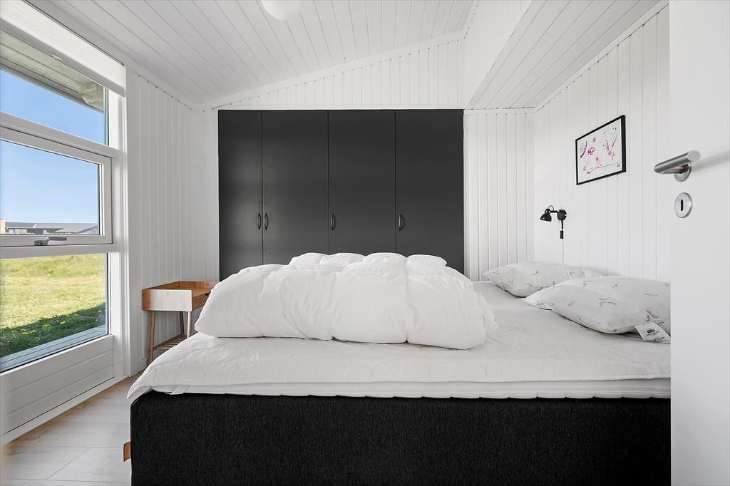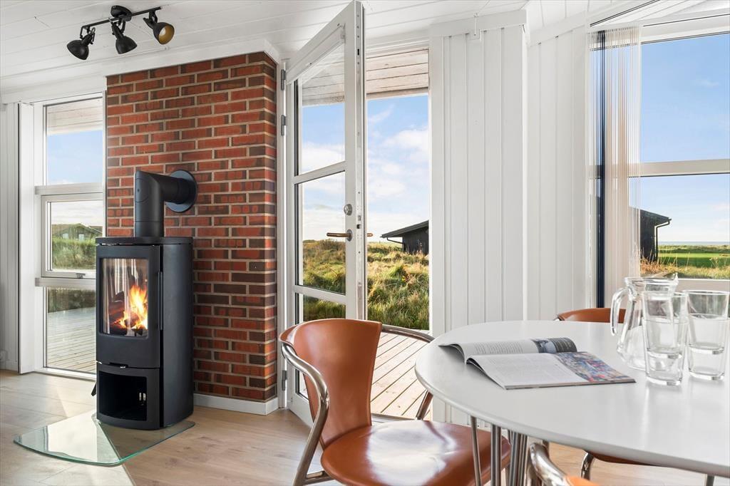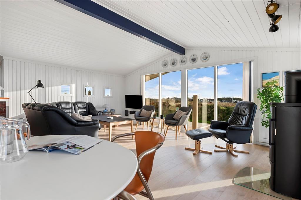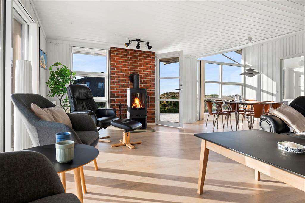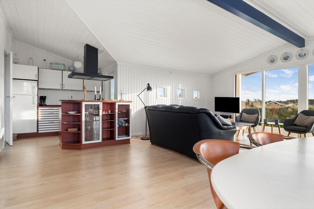 Sommerhuset er indrettet i en lys og venlig stil, der skaber en afslappet atmosfære fra første øjeblik. De store vinduer sørger for et smukt lysindfald og giver samtidig en imponerende udsigt til Vesterhavet, så du aldrig er langt fra naturens nærvær. Stue og køkken ligger i åben forbindelse, hvilket gør det nemt at være sammen om både madlavning og hyggelige stunder. De rummelige soveværelser og et velholdt badeværelse fuldender den indbydende indretning, der gør det let at føle sig hjemme.