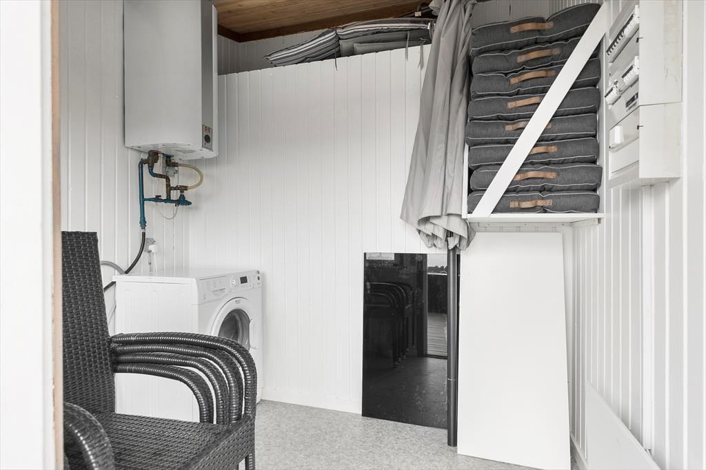 Udenfor venter en dejlig terrasse, hvor du kan slappe af med lyden af bølgerne i baggrunden og den friske havluft omkring dig. Sommerhusets beliggenhed, under 100 meter fra stranden, gør det nemt at tage en spontan dukkert eller gå en lang tur langs vandkanten. Her kan du mærke sandet mellem tæerne og nyde solnedgangen over horisonten – måske med et glas vin i hånden fra terrassens bedste udsigtsplads. Med gode havemøbler og en grill har du alle muligheder for at nyde ferielivet udendørs, uanset om du foretrækker solbadning, måltider under åben himmel eller ren afslapning i en liggestol.