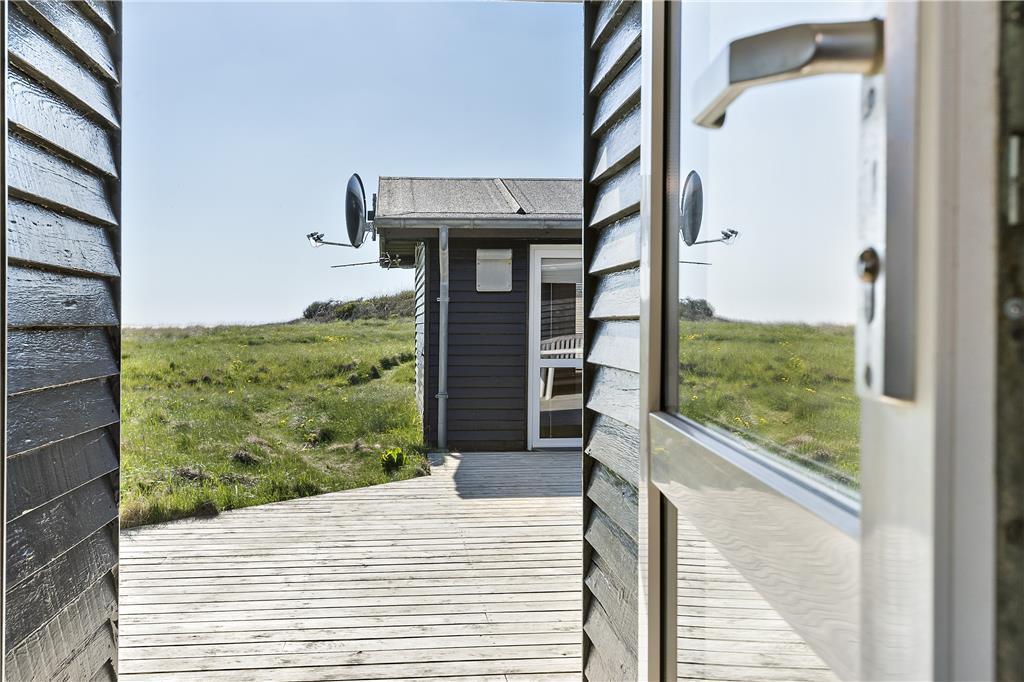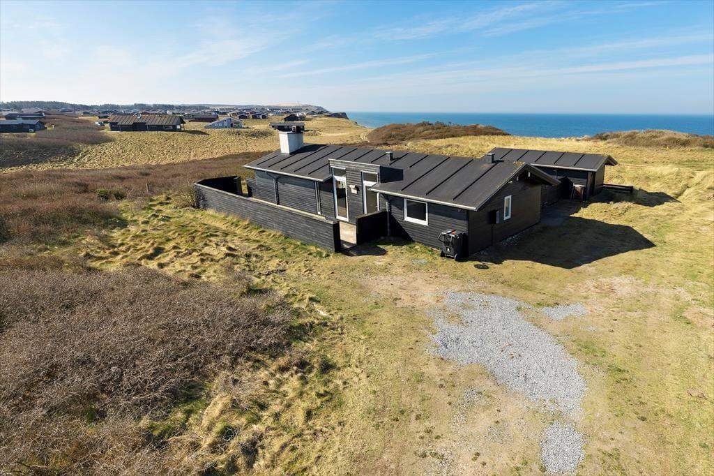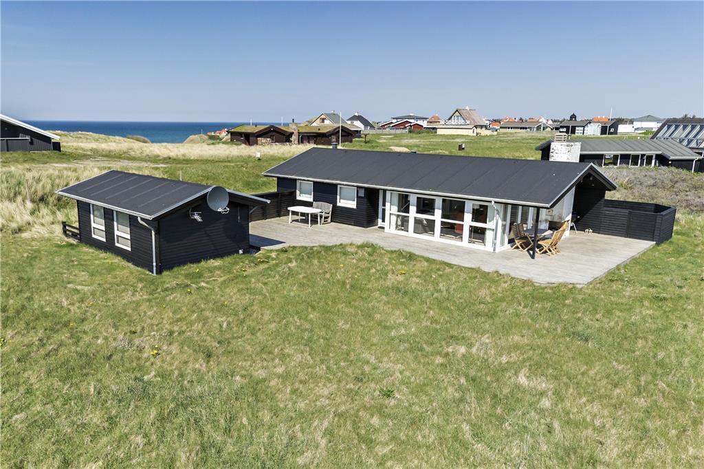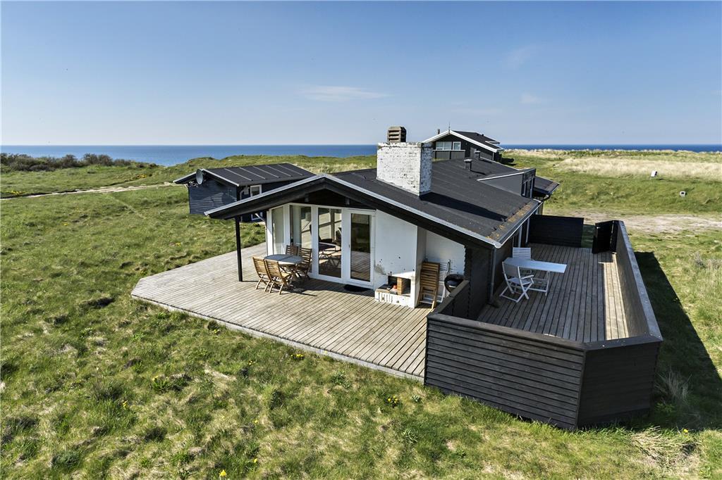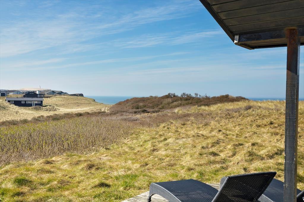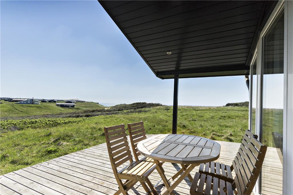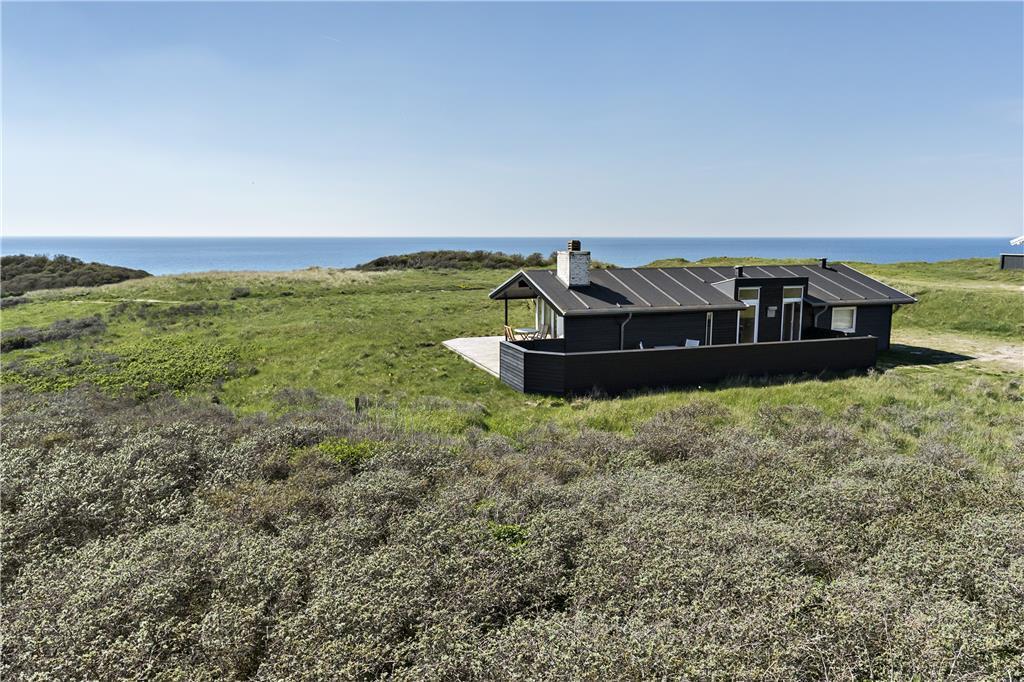 Sommerhuset ligger på en flot naturgrund og har dejlige terrasser på flere sider, hvor man kan nyde de smukke omgivelser og den barske natur lige meget, hvordan vejret arter sig. Foran huset har man en helt ugeneret beliggenhed med direkte udsigt til havet og de store vidder, som kendetegner området.