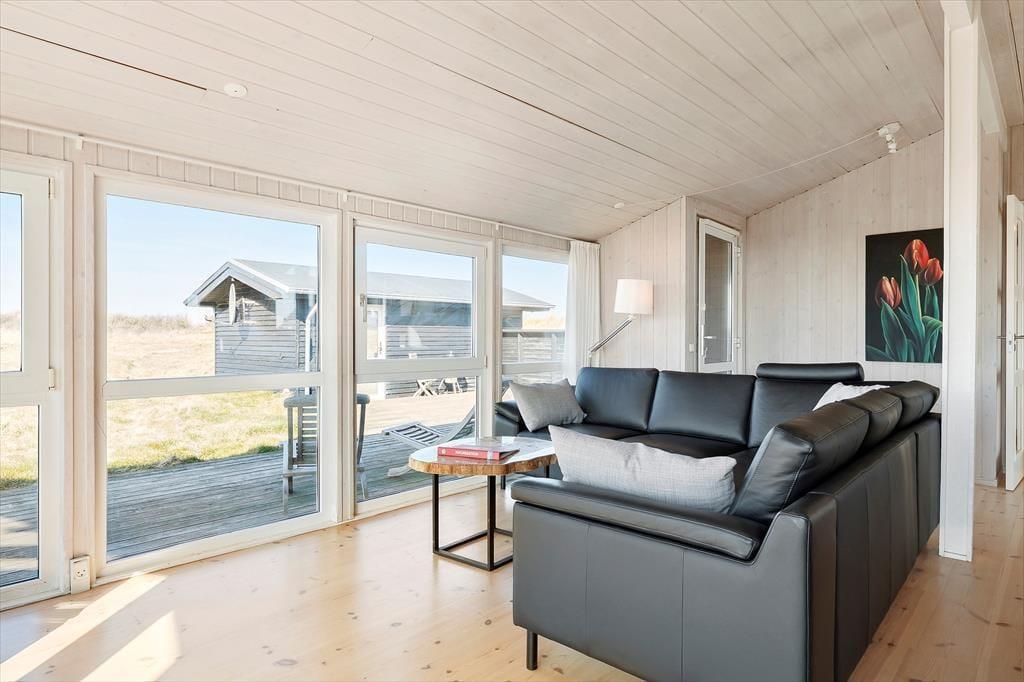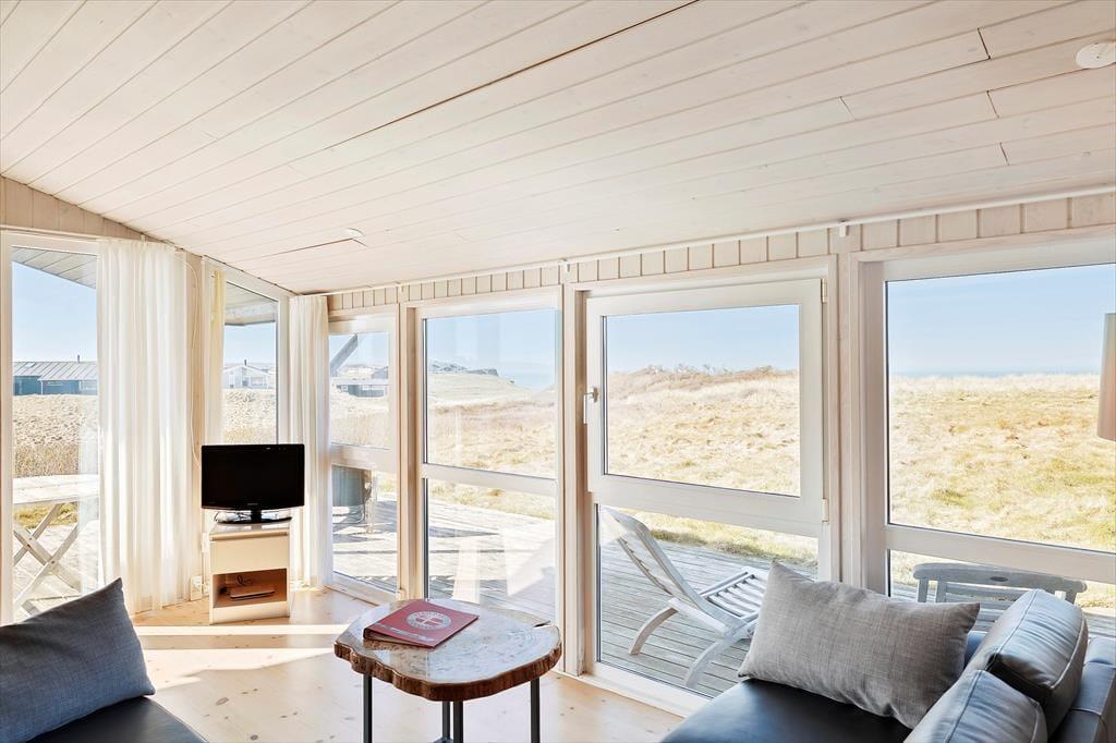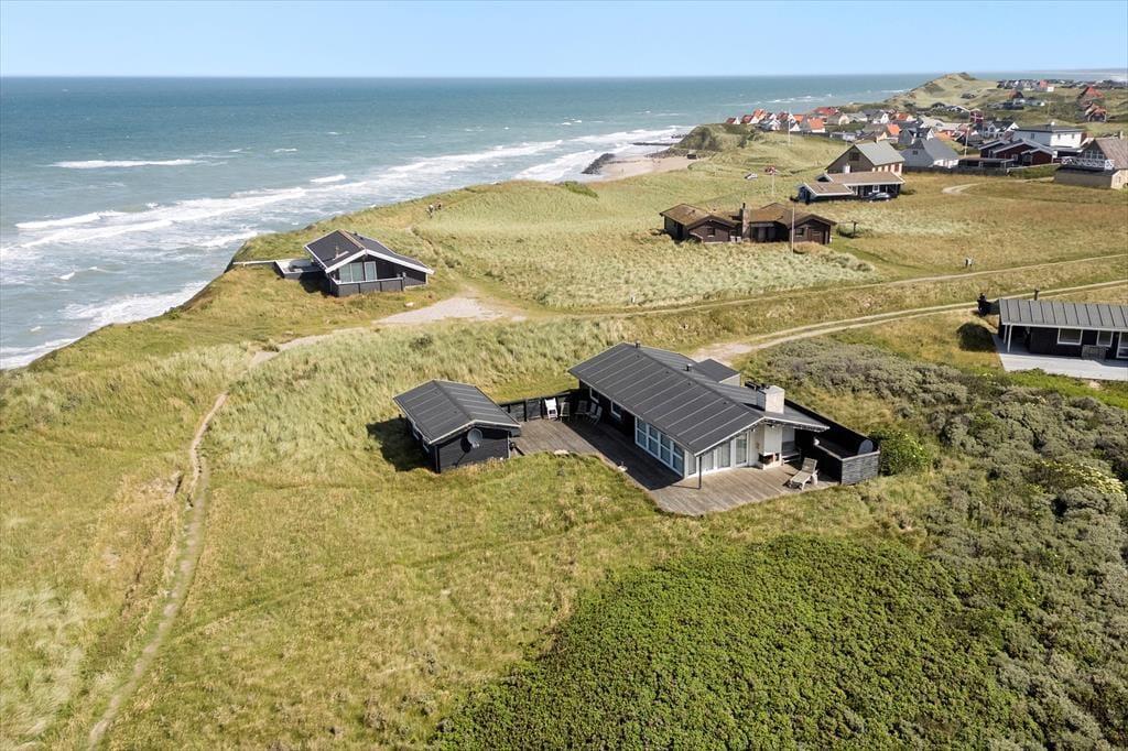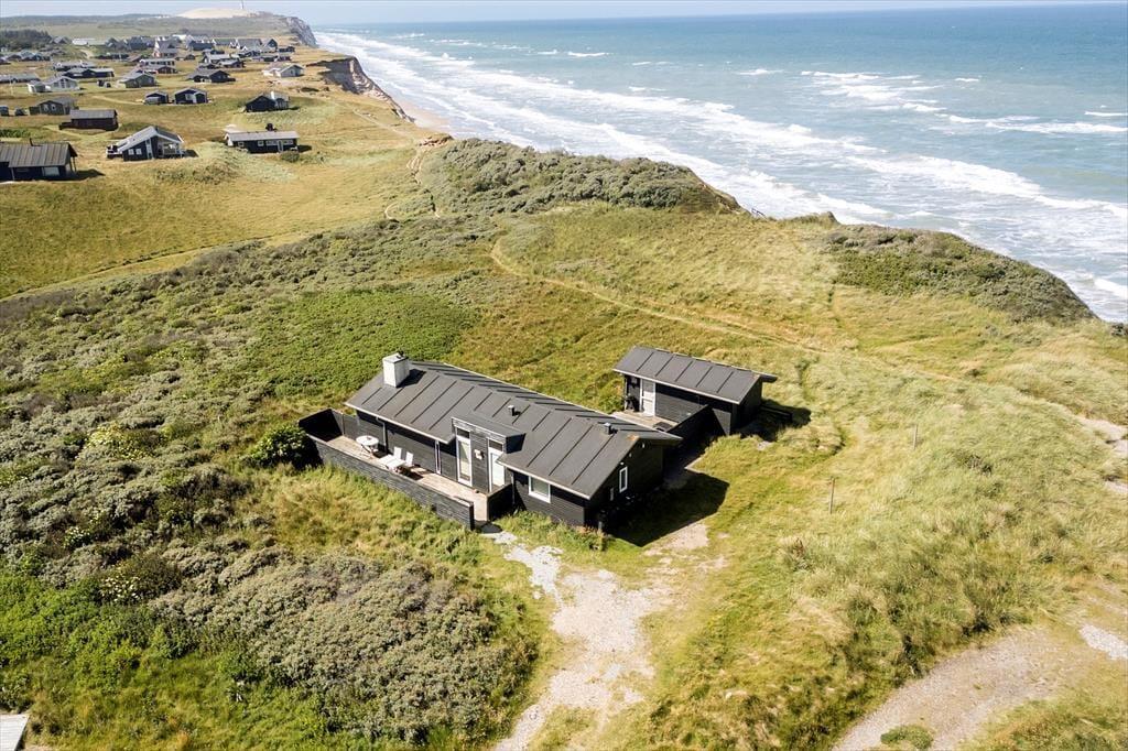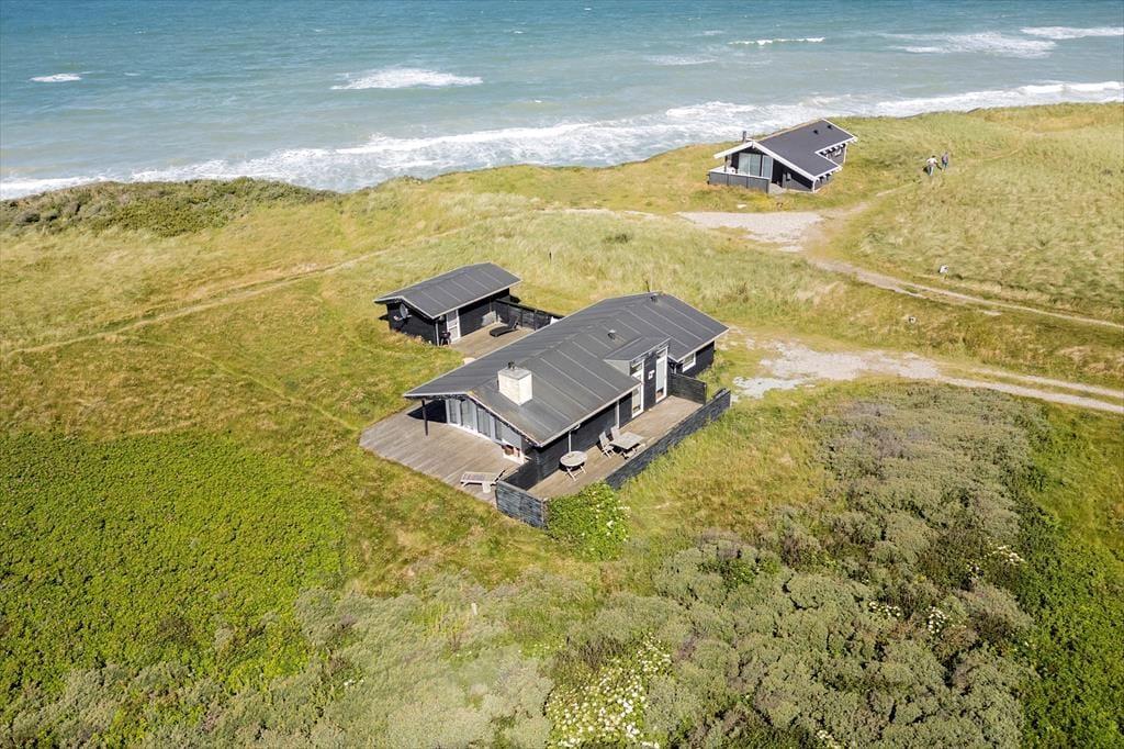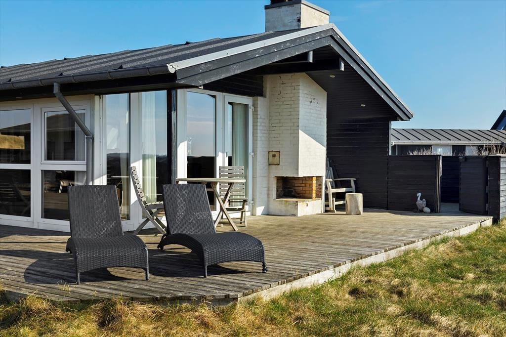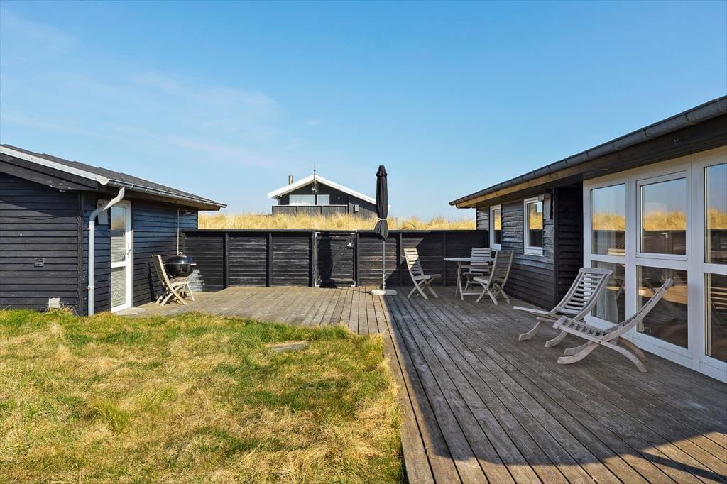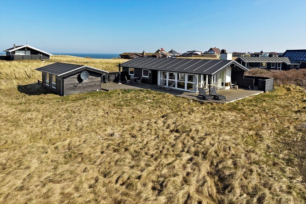 Sommerhuset ligger på en flot naturgrund og har dejlige terrasser på flere sider, hvor man kan nyde de smukke omgivelser og den barske natur lige meget, hvordan vejret arter sig. Foran huset har man en helt ugeneret beliggenhed med direkte udsigt til havet og de store vidder, som kendetegner området.
