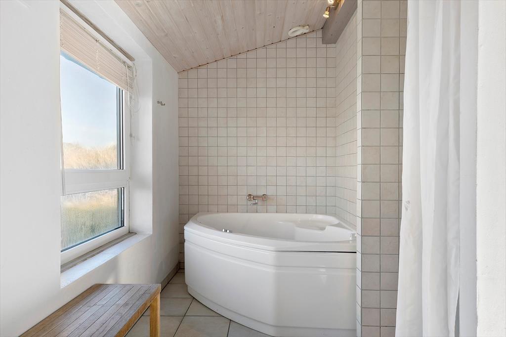 Sommerhuset består af et hus og et tilhørende anneks. Huset råder over et stort og åbent køkken-opholdsrum, tre værelser med gode senge og et mindre badeværelse med gulvvarme og bruser. Køkkenet er veludstyret med hårde hvidevarer og andre hjælpemidler, og opholdsrummet er indrettet med pæne kvalitetsmøbler, flotte tæpper og malerier i klare farver og et helt fantastisk lysindfald fra de store vinduer; herfra kan man også nyde den smukke udsigt over landskabet, Vesterhavet og Rubjerg Knude syd for Lønstrup. Desuden har sommerhuset en brændeovn og flere andre moderne kvaliteter, så både hygge og afslapning er sikret. I annekset finder man et flot og luksuriøst wellnessrum med spabad, infrarød sauna og brusekabine, og her kan man også vaske og tørre tøj og håndklæder undervejs i ferien. Alt i alt gode og velfungerende rammer for en vellykket ferie!