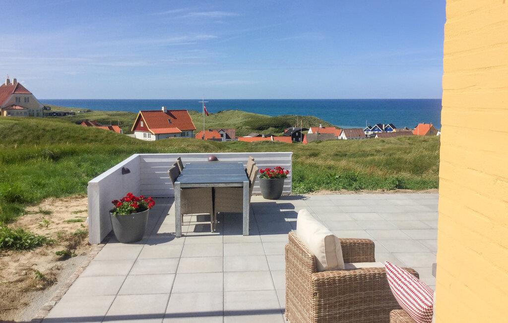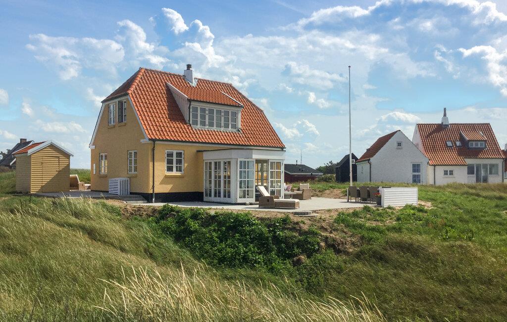Huset ligger tæt på stranden i det flotte, åbne klitlandskab, og her er der lagt op til en allelunde dejlig ferie. Indretningen fremstår lyst og indbydende, og i det åbne opholdsrum mødes køkkenet og stue i et dejligt lysindfald gennem de store vinduespartier. Nyd godt af husets komfort på de to etager og af havudsigten, som kan nydes fra stuen og er virkelig behagelig. Tillad jer selv lidt ekstra wellness og glid ned i boblebadet, inden I lader en sommeraften gå på hæld med en kølig drink på terrassen.
