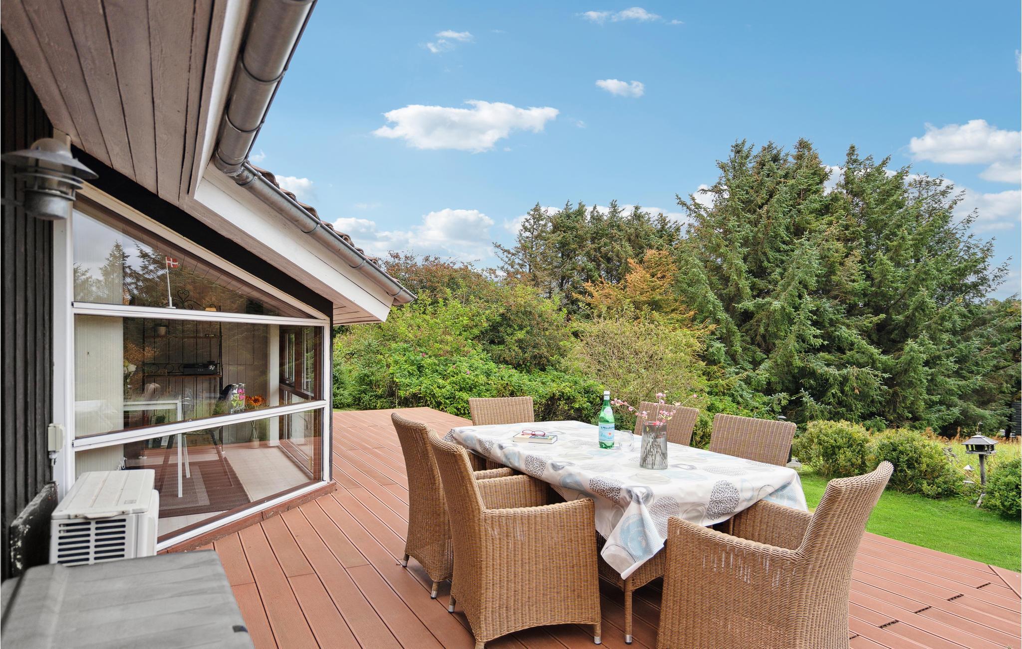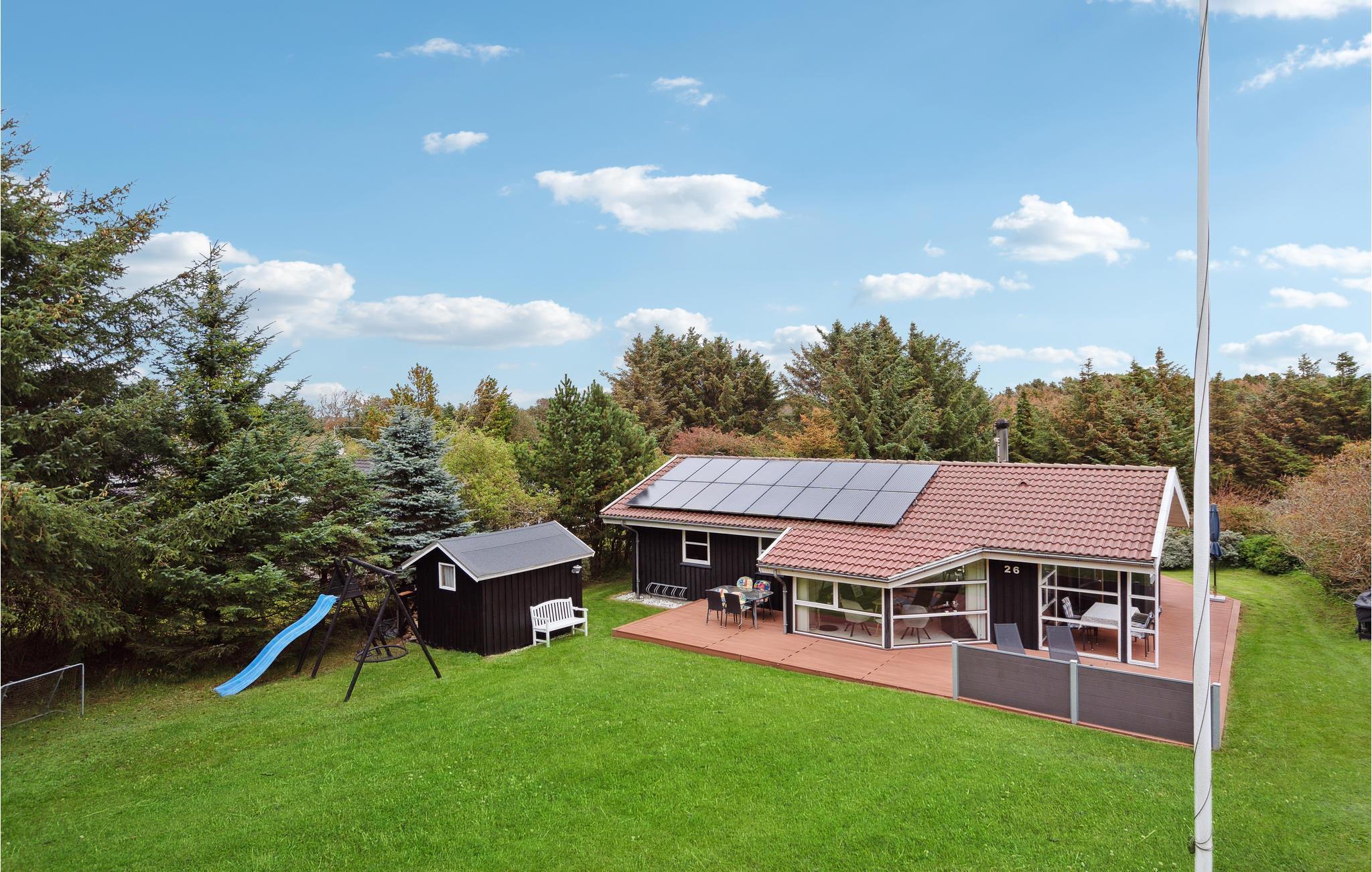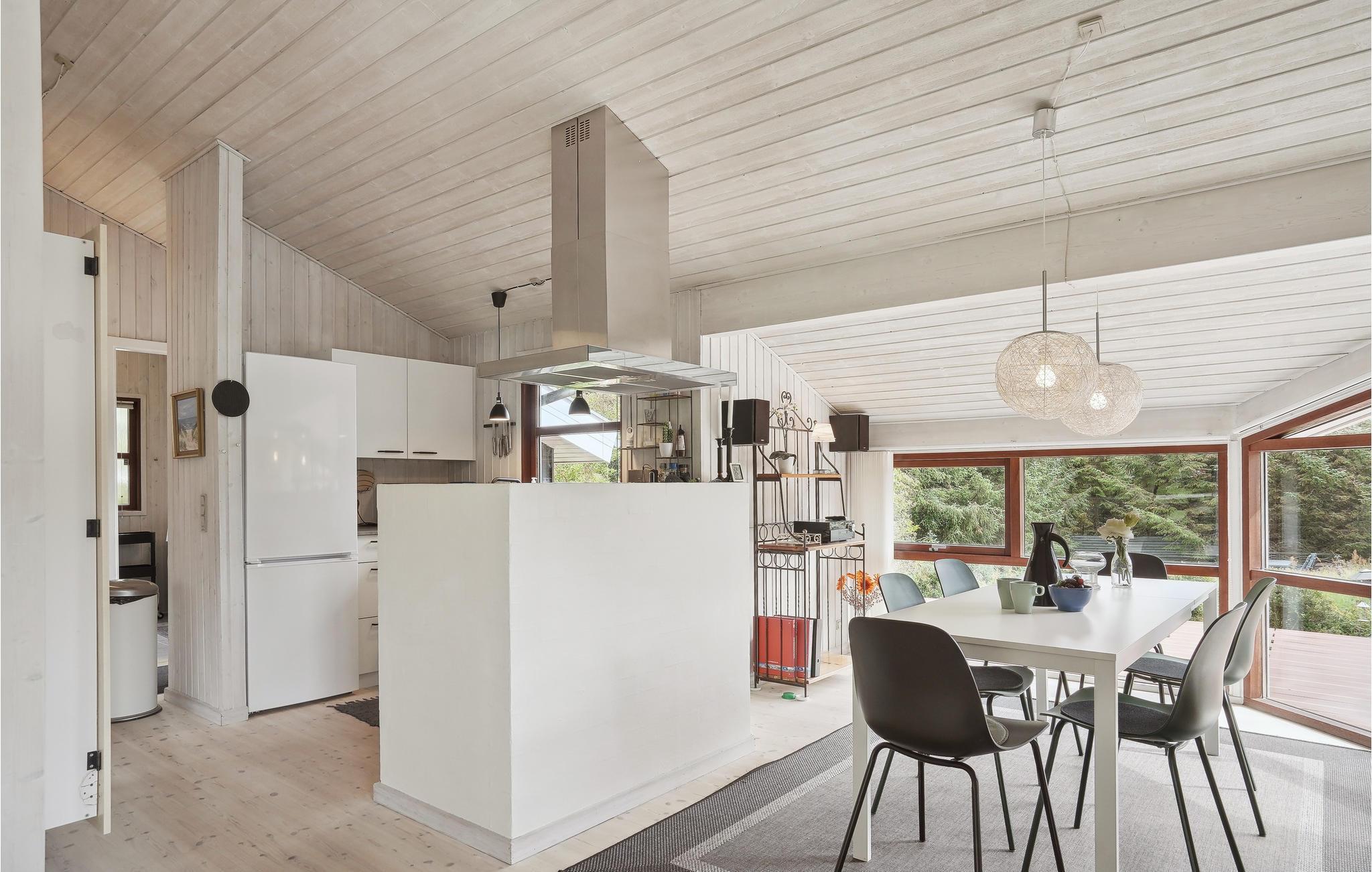 Der er ikke langt til strand og by fra dette indbydende sommerhus, som kan blive rammen om jeres næste ferie. Boligen har et lyst og venligt udtryk med dejlige rammer til at samles og slappe af. Giv jer god tid til madlavningen i køkkenet, mens børnene hygger sig med brætspil eller på legestativerne udendørs. Oven på en forblæst gåtur sørger brændeovnen hurtigt for behagelig varme i stuen.