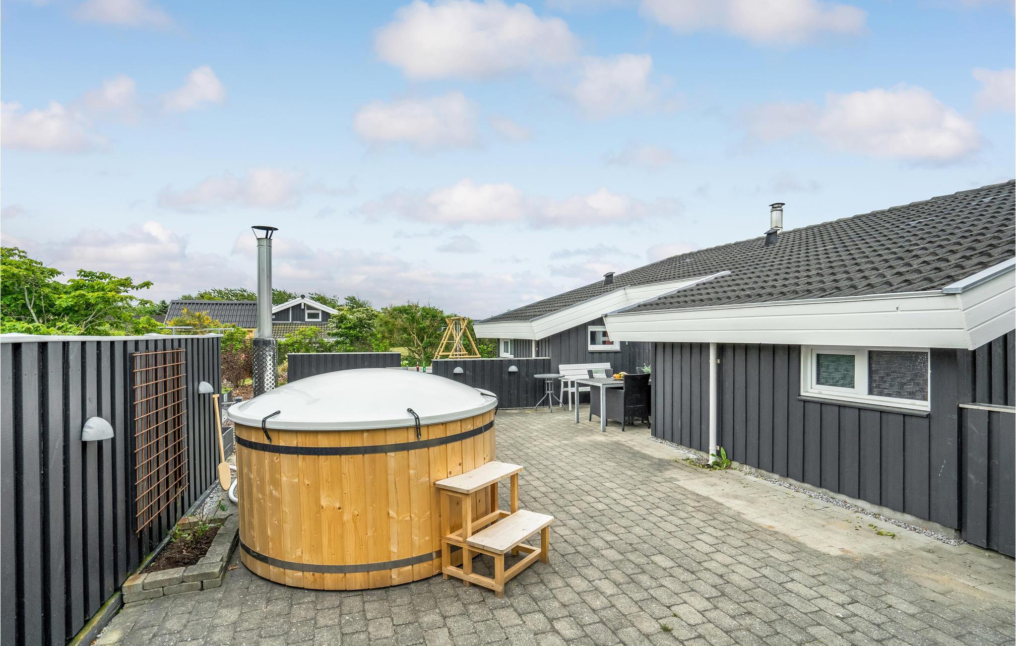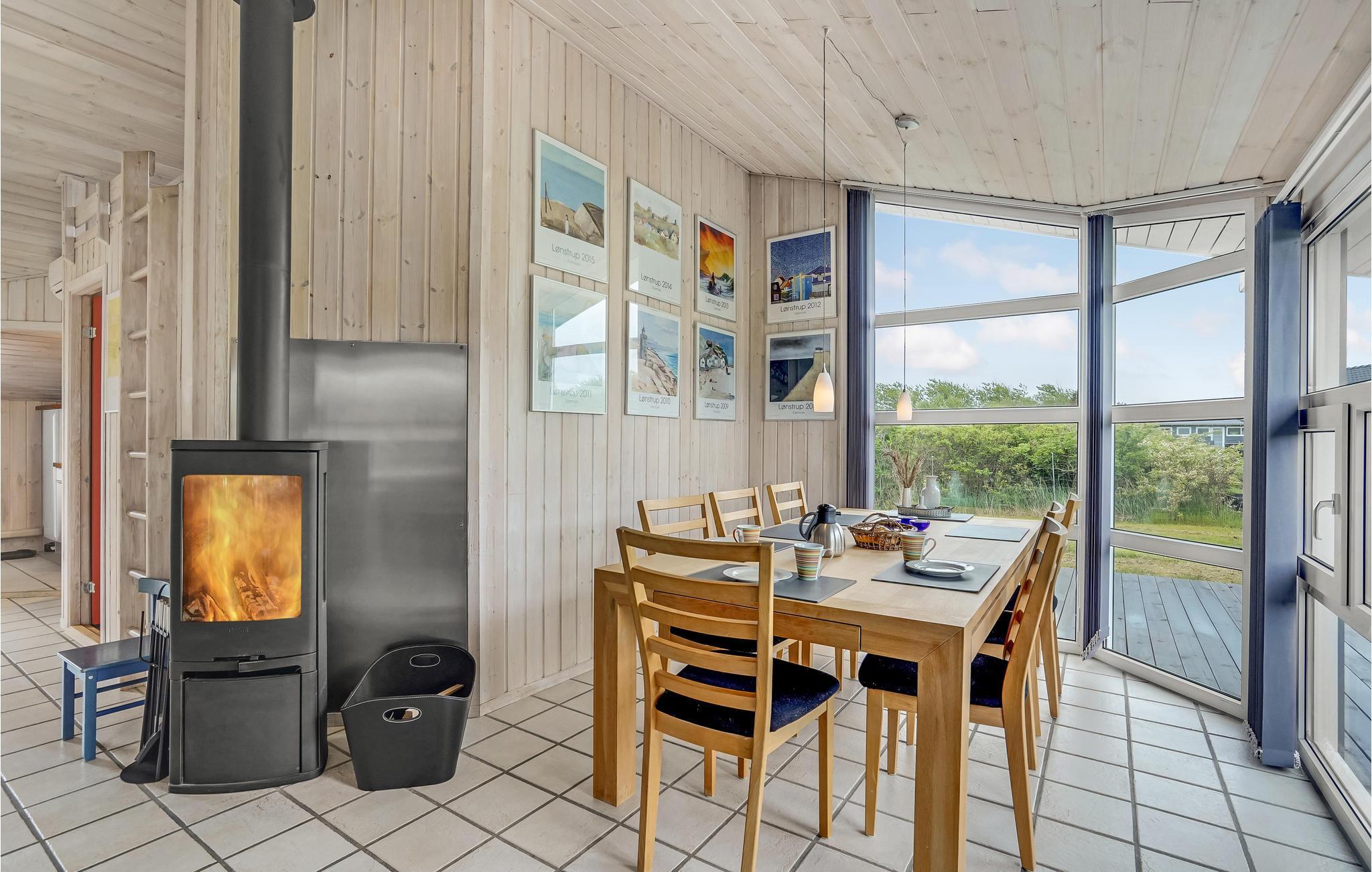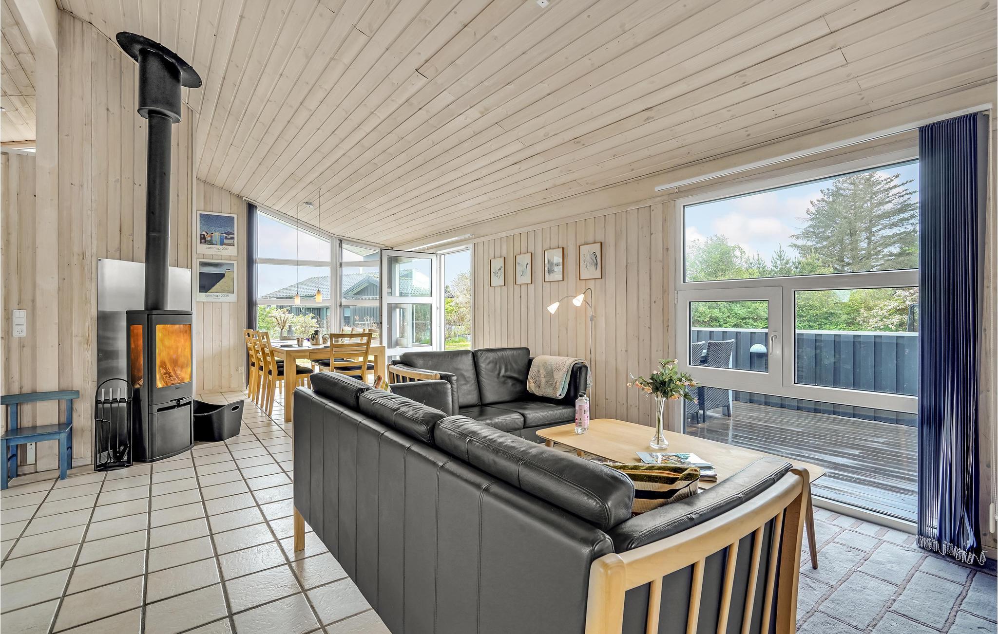 Glæd jer til nogle skønne dage i dette rummelige, lyse og praktisk indrettede feriehus. Over 100 m2 terrasser og den skønne, børnevenlige grund indbyder til solbadning, leg, sport, udendørsspil og hyggelige grillaftener. Op til tre kæledyr er også velkomne her, så hele familien kan holde ferie sammen. Takket være spa og sauna kan I se frem til rendyrket ferieafslapning, men hovedattraktionen er det lækre vildmarksbad, hvor en drink kan nydes om aftenen til den dejlige kombination af vildmarksbadets varme vand og den friske luft. En god feriedag kan afsluttes i opholdsstuen foran brændeovnen og fladskærmen, som er udstyret med Chromecast, således at I kan streame jeres yndlingsfilm- og serier.