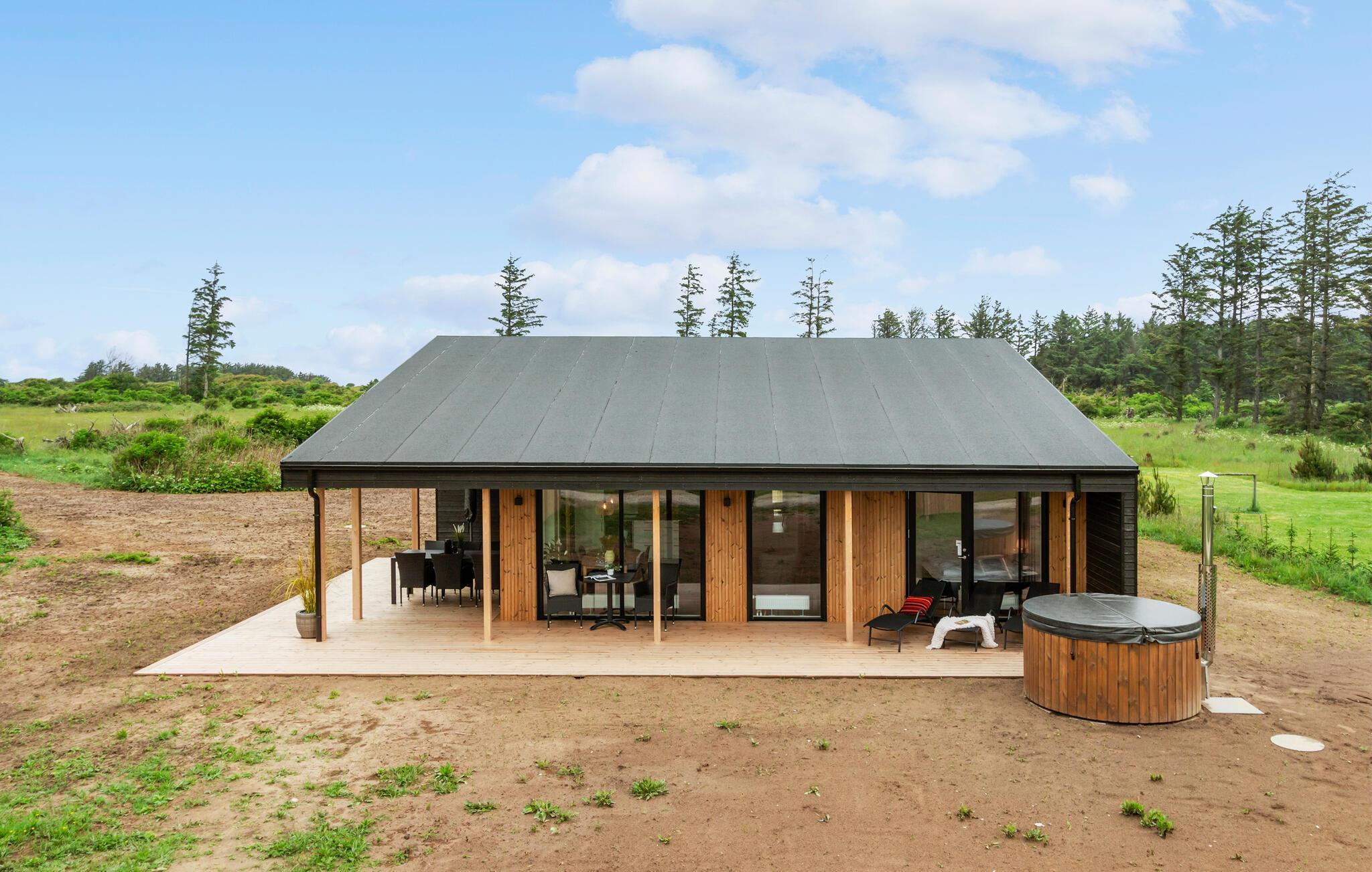Moderne feriehus nær Lønstrup med sauna, vildmarksbad og stor have i naturskønne omgivelser.