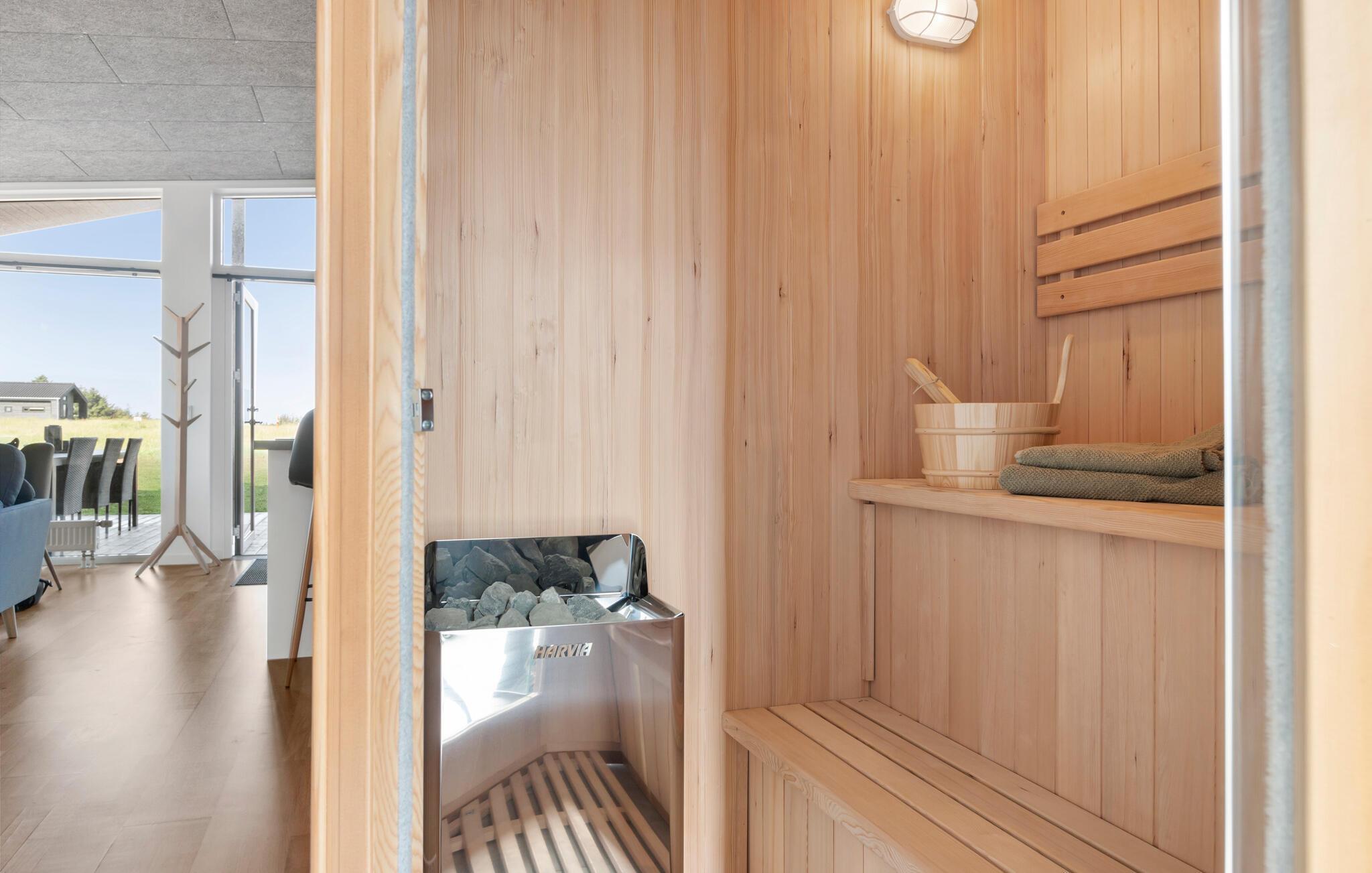 Velkommen til dette lækre hus, der ligger på en stor grund i naturskønne omgivelser ikke langt fra Lønstrup og stranden. Her får I dejlige lysindfald gennem de store vinduespartier, der samtidig giver en skøn udsigt til det grønne. Huset er flot indrettet med en åben planløsning, komfortable møbler og et fuldt udstyret køkken, hvor familiens kokke kan tage sig god tid med at kræse om livretterne. Efter aftensmaden kan I slå jer ned i sofahjørnet med lidt gode snacks og en god film på tv'et, og skal I gøre det lidt ekstra godt for jer selv, kan I forkæle jer med en lækker aftentur i saunaen.