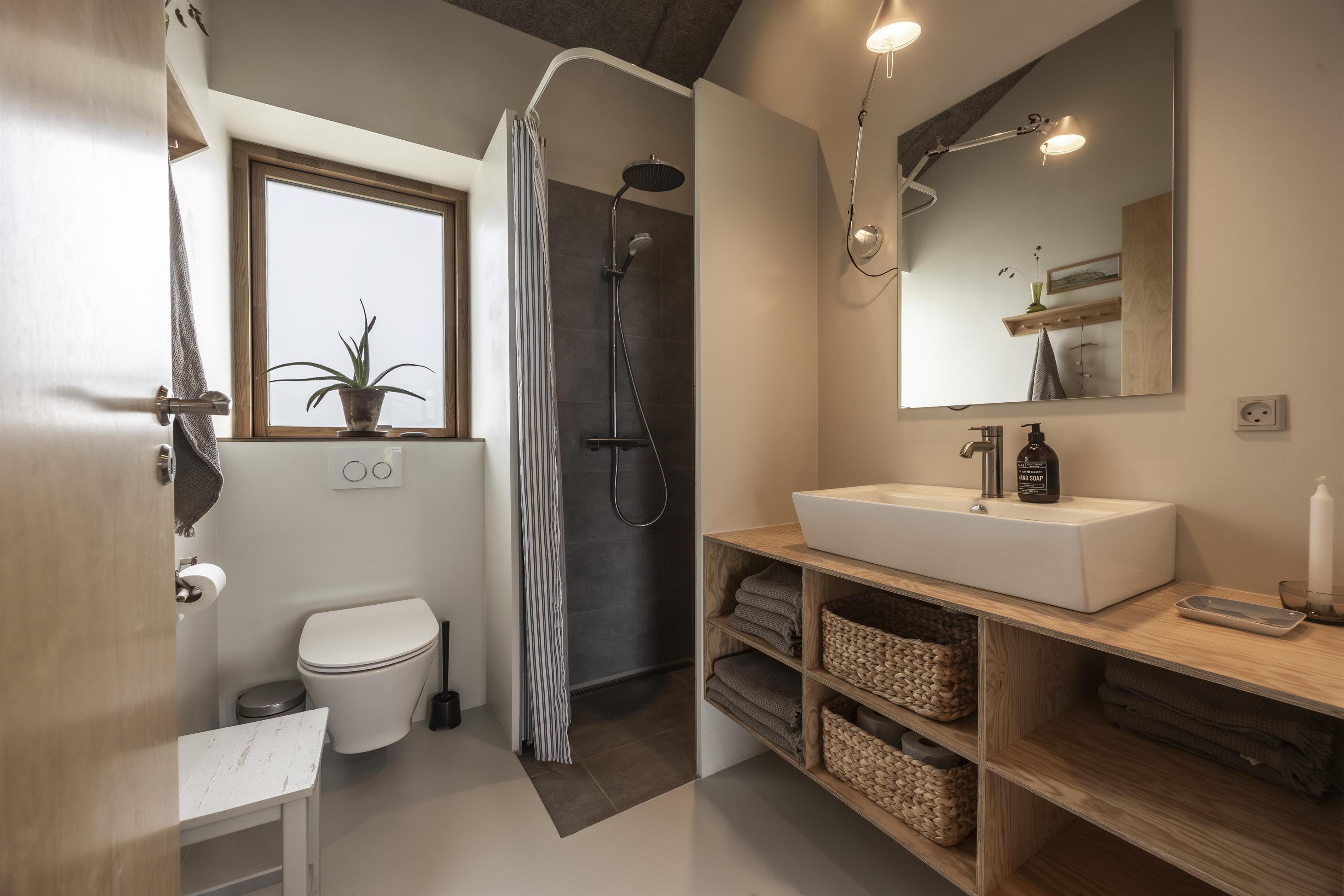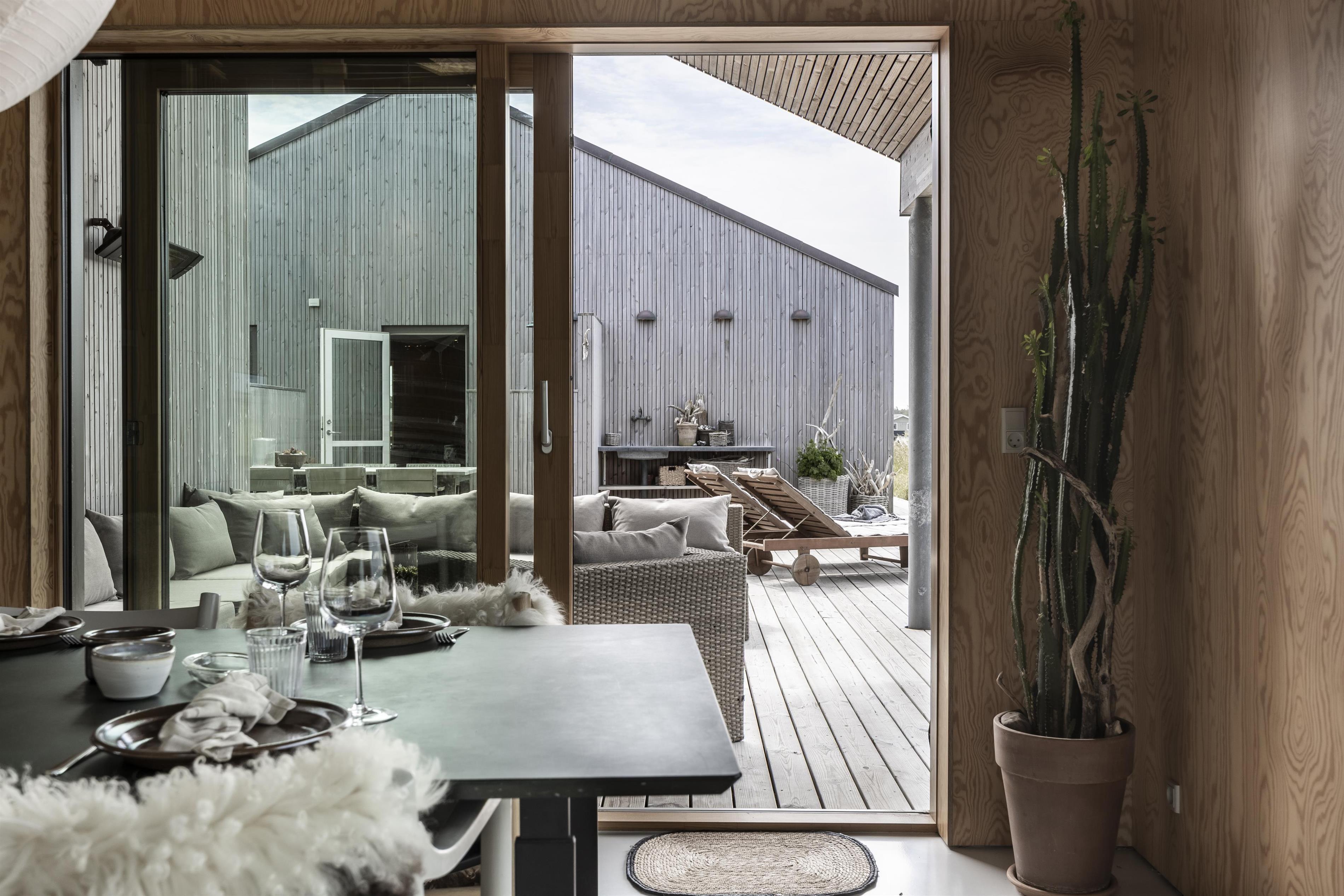 Udenfor er ferieoplevelsen mindst lige så gennemført. Huset er omgivet af store, indbydende terrasser – nogle overdækkede, andre i læ med sol det meste af dagen. Her er plads til både fælles måltider, stille læsestunder og hyggelige aftener med varme tæpper og terrassevarmere. Indretningen af de udendørs områder er inspireret af den omkringliggende natur og giver rig mulighed for både samvær og fordybelse. Lyt til bølgernes rytme og lad tankerne vandre. Tænd også gerne op i bålstedet bag feriehuset og grill skumfiduser, mens ilden knitrer i tusmørket.