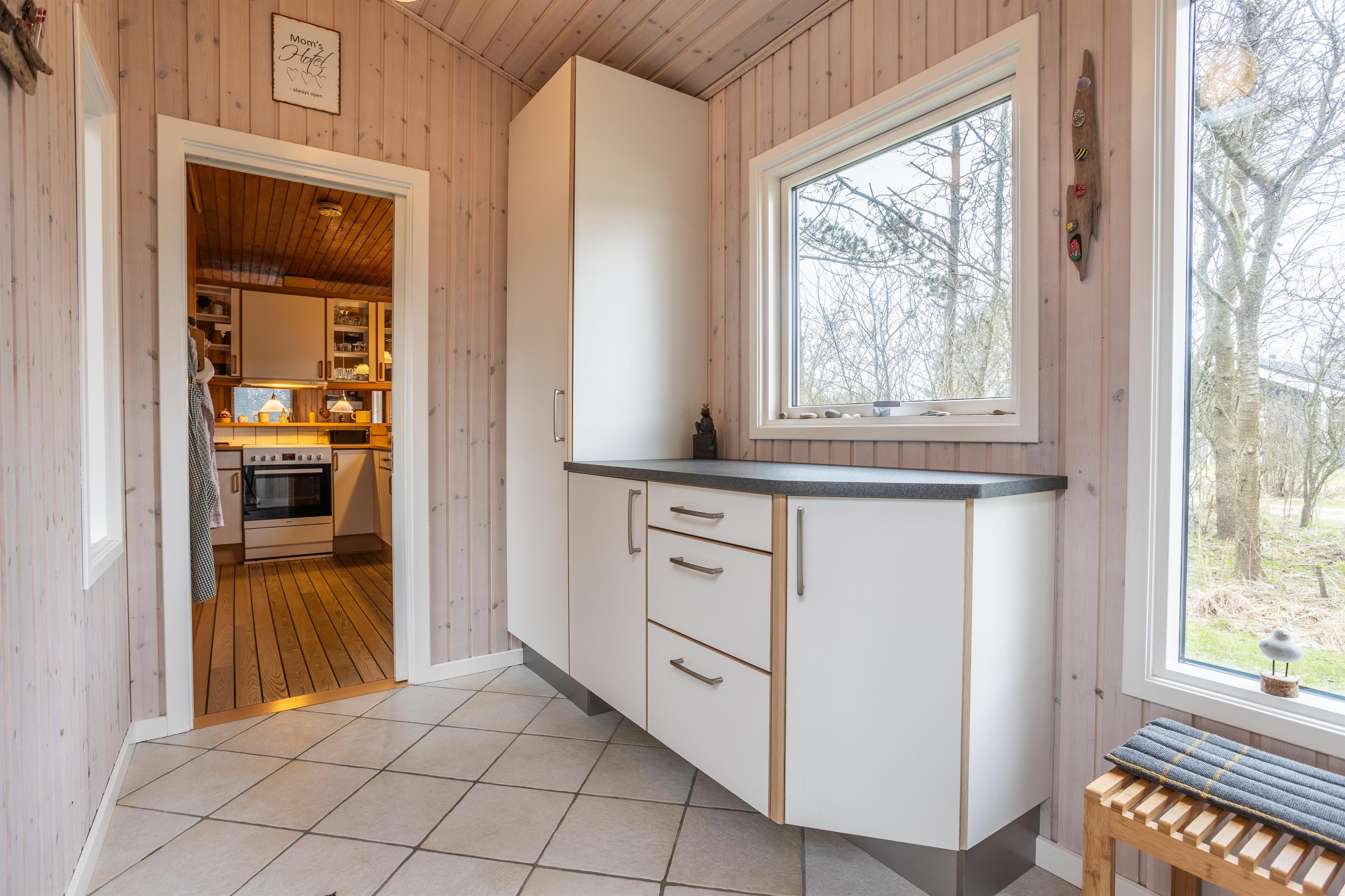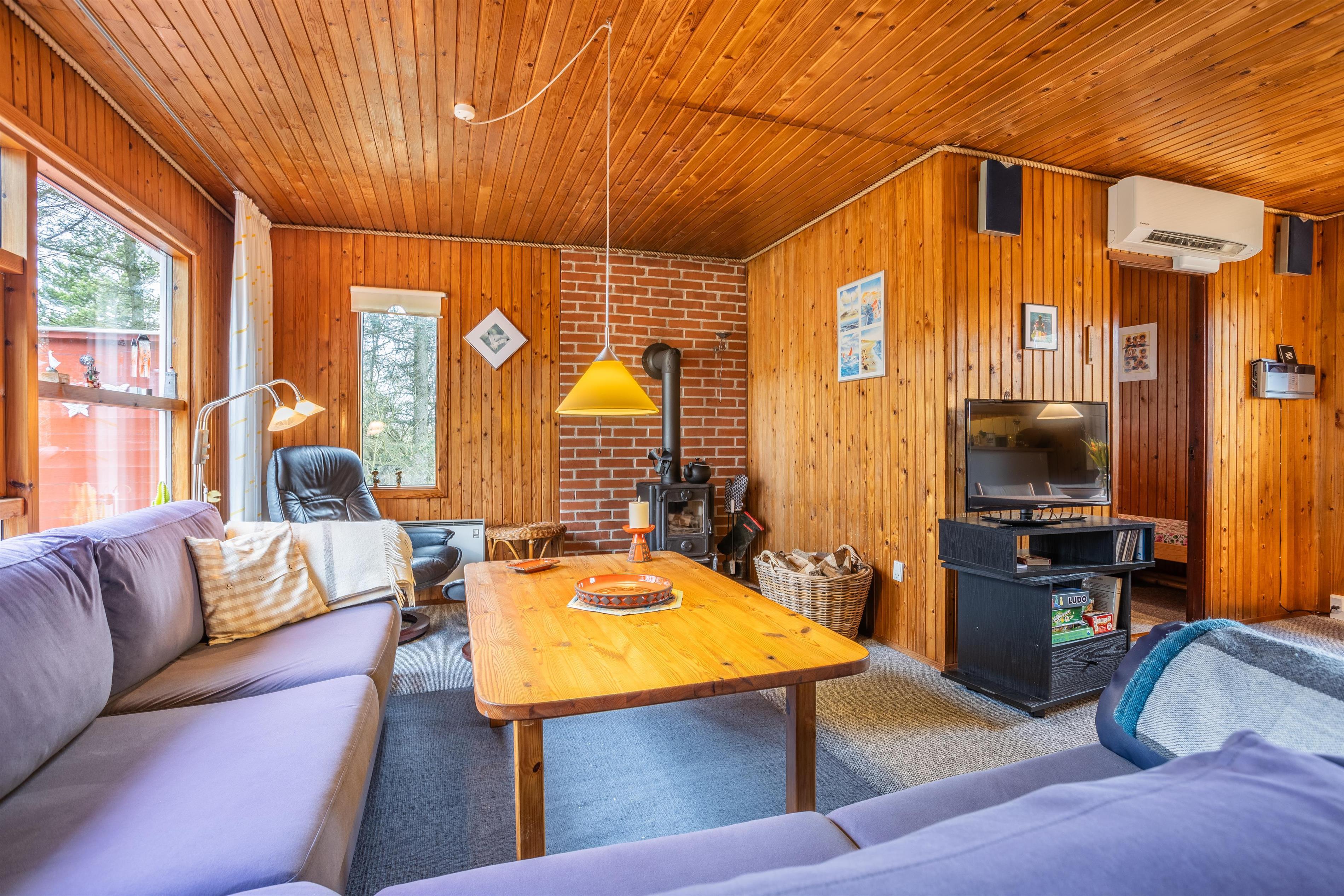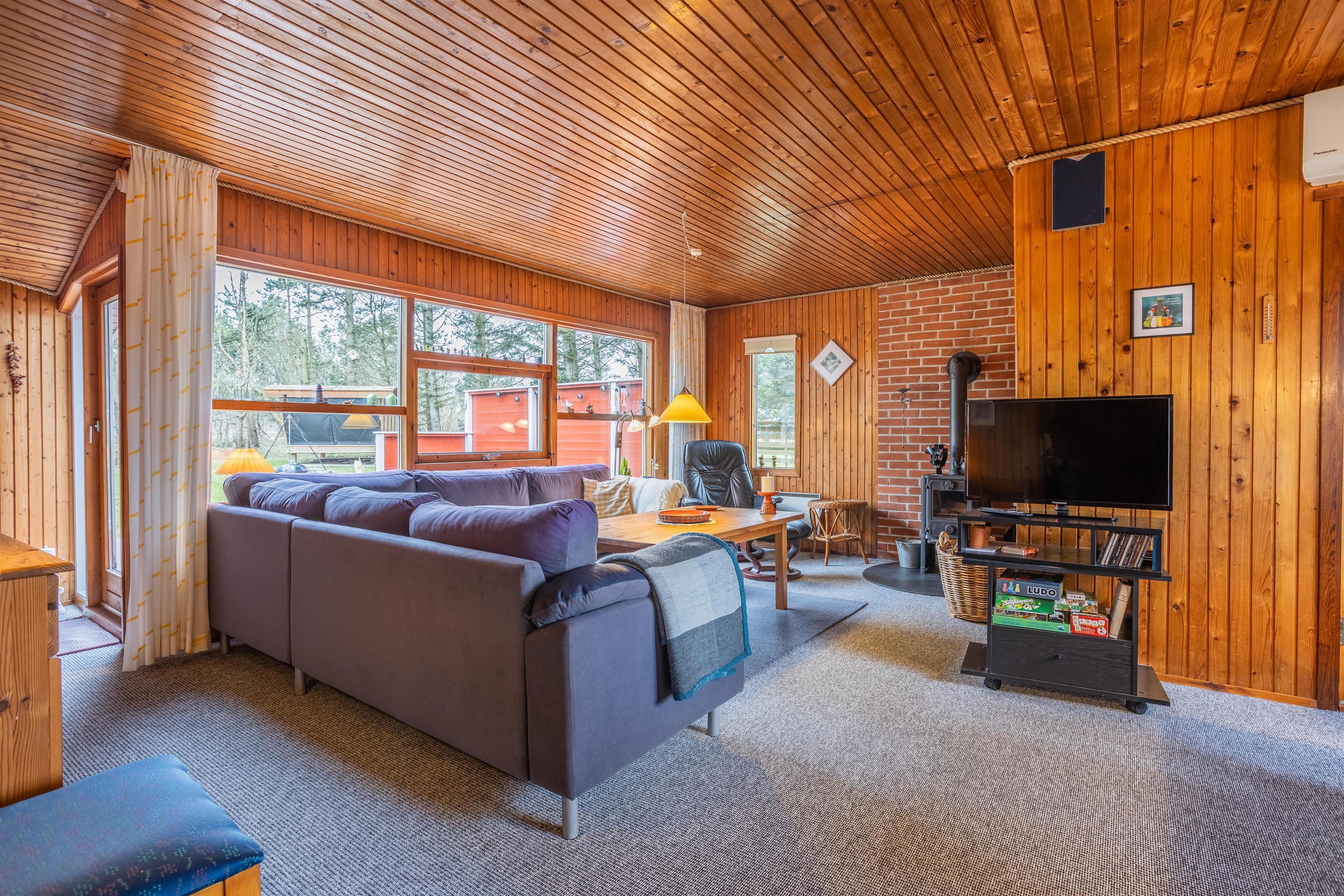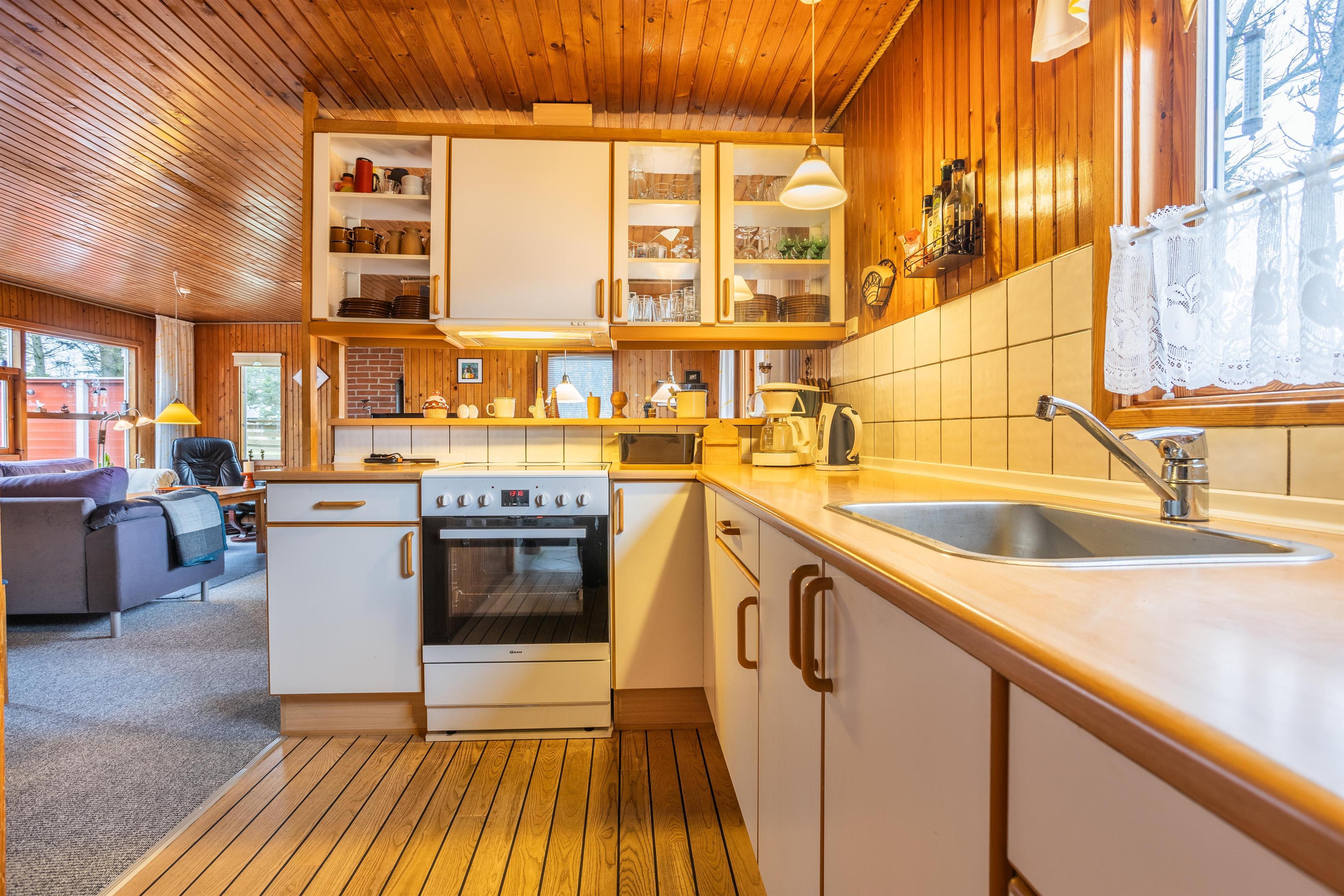 Dette meget velholdte feriehus er funktionelt indrettet med fokus på hygge og komfort. Når I træder ind, møder I et rummeligt bryggers med god plads til sko og overtøj, inden I bevæger jer videre ind i det lille, hyggelige køkken. Her kan I samles om madlavningen og nyde den hjemlige atmosfære, mens dagens oplevelser bliver vendt. Opholdsrummet er hyggeligt og indrettet med en stor sofagruppe, der indbyder til spil og afslappende stunder med familien. På de kølige vinteraftener skaber brændeovnen en behagelig varme og en helt særlig stemning i huset. Huset rummer desuden tre gode soveværelser og et dejligt badeværelse. Med blot 800 meter til stranden er huset perfekt til jer, der ønsker en ferie tæt på naturen. En kort gåtur fører jer ned til den fine sandstrand, hvor I kan nyde alt fra afslappende dage i solen til forfriskende gåture langs vandet.