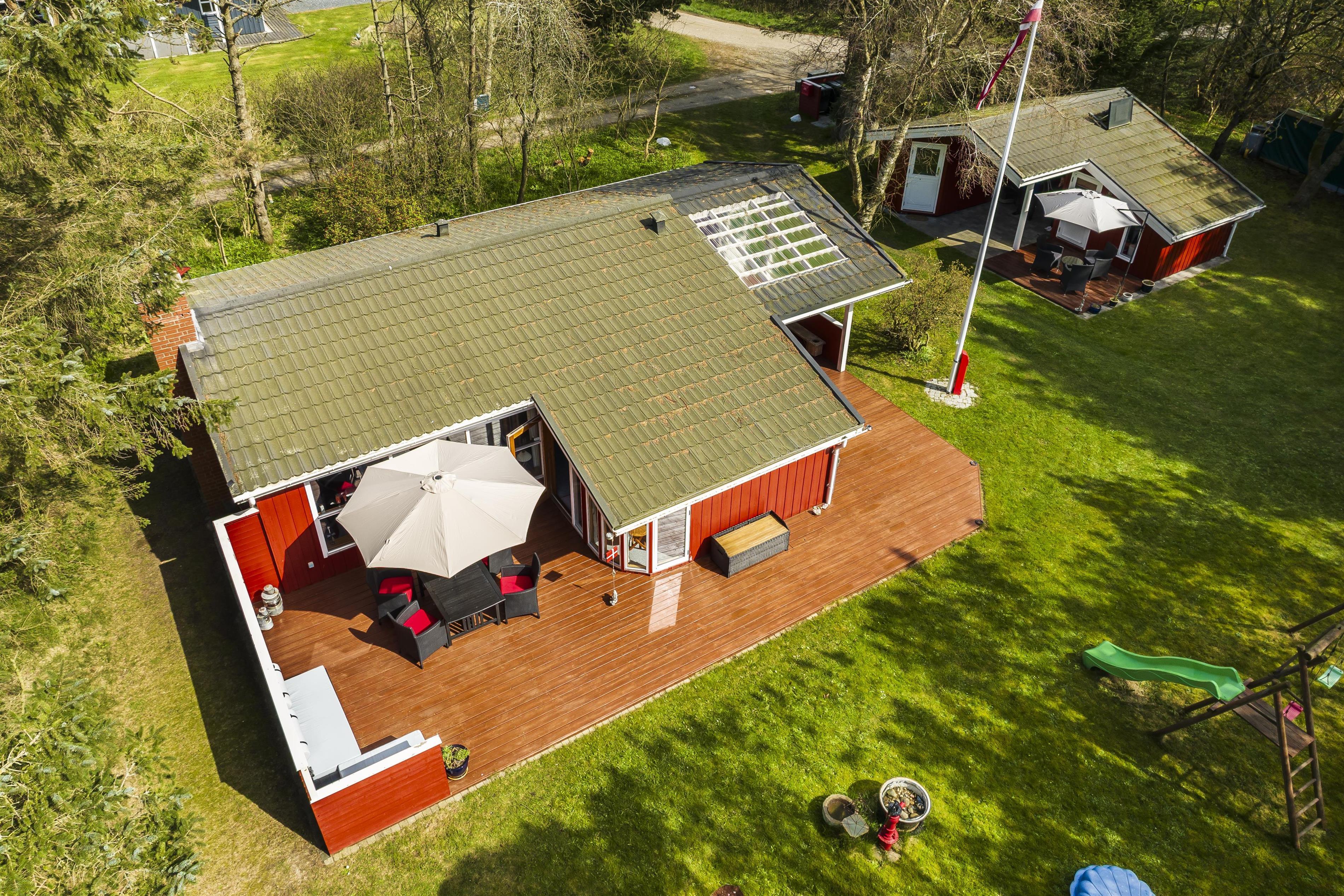 Sommerhuset ligger på en dejlig grund med flere terrasser, der giver jer mulighed for at nyde solen fra morgen til aften. Her kan I tilberede måltider på grillen eller slappe af med en god bog, mens I nyder den friske havluft. I finder en overdækket terrasse på den ene side af huset og en åben men meget ugeneret terrasse på den anden side af huset.