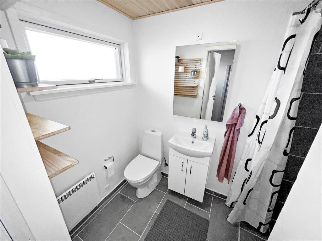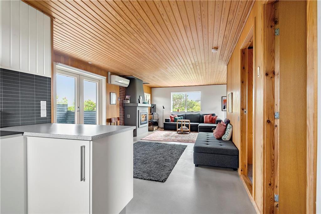 Udsigten over det betagende landskab med hybenbuske, marehalm og bløde klitter kan I nyde fra både opholdsrummet og de to soveværelser, og det fungerer som en fin påmindelse om, at I befinder jer langt væk fra hverdagens rutiner. Sommerhusets hyggelige indretning spiller smukt sammen med naturomgivelserne, for det er nemt at mærke, at det er ferietid, når I slapper af i stuens sofaafdeling med en god bog og ild i brændeovnen. Stuens åbne køkken er pænt og velindrettet, og når I har tilberedt frokosten eller aftensmaden her, er det hyggeligt at samles rundt om spisebordet til et godt måltid mad. Badeværelset er enkelt og funktionelt indrettet med bruseniche i den ene ende, og på soveværelserne er der i alt plads til fem personer.