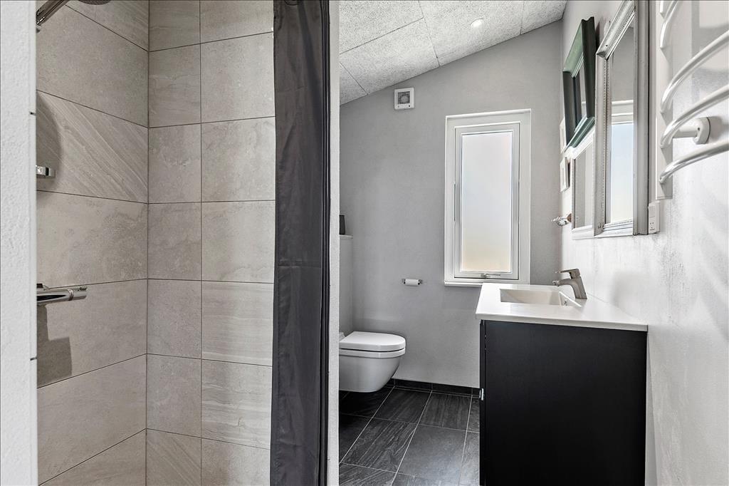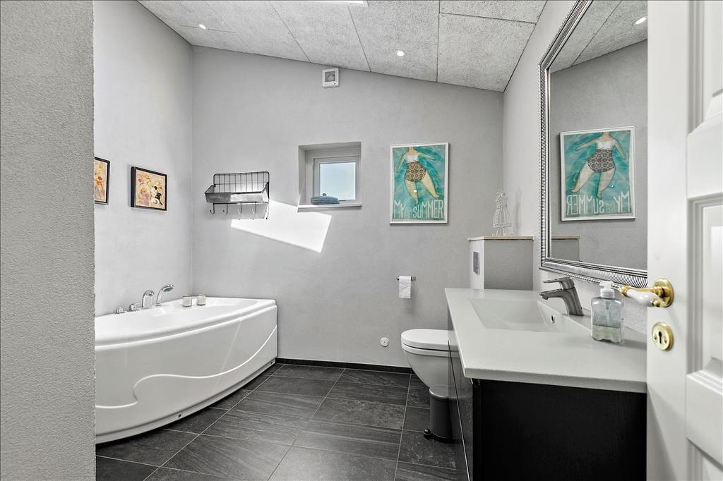 Da sommerhuset blev opført i 2015, lagde man stor vægt på at tilpasse arkitekturen til de smukke naturomgivelser. I opholdsrummet går de øst- og sydvendte vinduespartier derfor fra gulv til loft, så både udsigten og dagslyset kan nydes i fulde drag, når I slænger jer i sofaen, sidder omkring spisebordet eller hygger jer med madlavningen i køkkenafdelingen. Det stilfulde møblement er holdt i lyse farvetoner, og så er der loft til kip med akustikplader, der bidrager til den gode rumfornemmelse. I samme dur er sommerhusets soverum hyggeligt indrettet – blandt andet med bløde dobbeltsenge på alle tre værelser – mens de to badeværelser giver jer en lækker ramme om morgenbrusebadet. Får I lyst til et afslappende boblebad efter dagens udflugter, kan det sagtens lade sig gøre, for der er spabad på det største badeværelse.