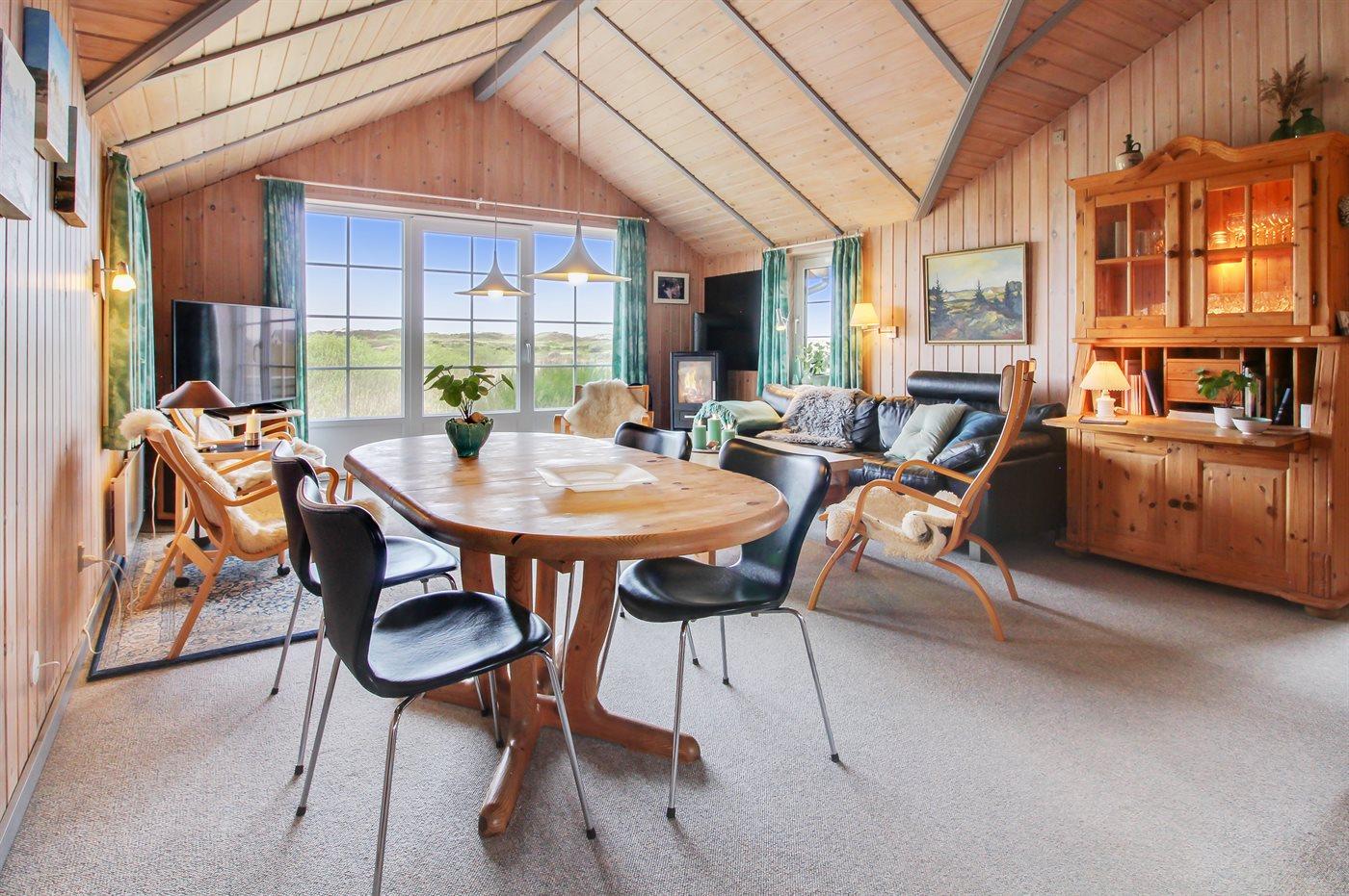 I første række til Lakolk Strand finder du dette pæne sommerhus, som er det oplagte valg, hvis du drømmer om at holde ferie i skøn natur ved en af Danmarks bedste strande. Huset ligger således, at du kan nyde den vidunderlig panoramaudsigt over det storslåede klitlandskab fra såvel stuen som fra terrassen.