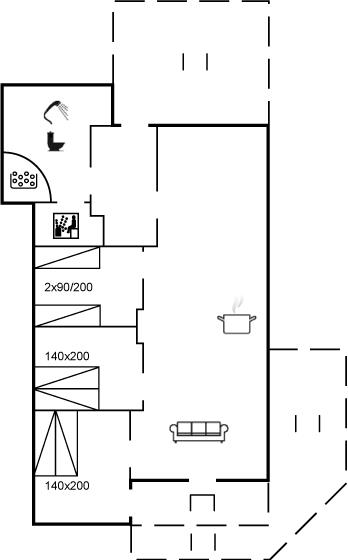 Sommerhuset egner sig til 4 personer. Ferieboligen er på 86 m² og er bygget i 2005. Det er ikke tilladt at medbringe husdyr. Ferieboligen er udstyret med energibesparende varmepumpe. Ferieboligen har vaskemaskine. Frysekapacitet på 59 liter. Der er desuden brændeovn.