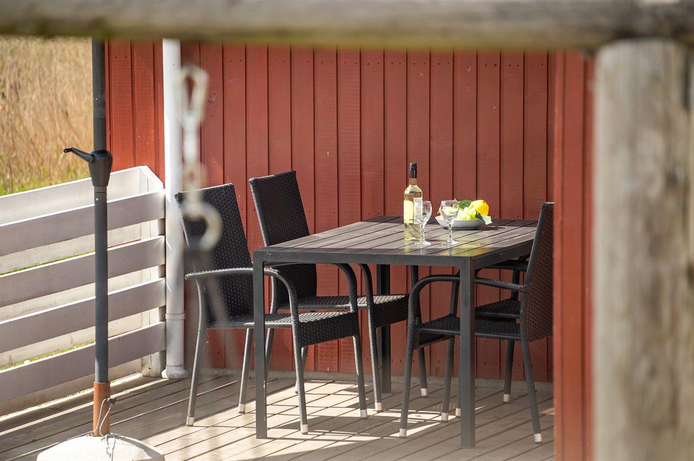 Ferieboligen er beliggende på en 1200 m² stor naturgrund. Der er 700 m til havet. Nærmeste forretning er beliggende i en afstand af 1500 m. Til ferieboligen hører 80 m² terrasseareal. Desuden er der 15 m² overdækket terrasse. Der er redskabsrum. Gynge. Sandkasse. Parkering ved ferieboligen.