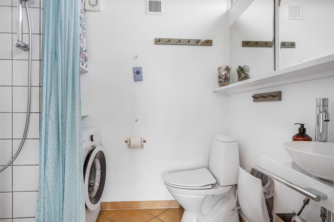 Badeværelse med bruser, gulvvarme, vaskemaskine og tørretumbler. Sauna. Køkkenet med bl.a. fryser ligger i forbindelse med opholdsstuen, som er udstyret med bl.a. brændeovn, fladskærms-TV med parabolantenne (separat betjening af parabol/satellit i soveværelse), DVD-afspiller og bluetooth højtaler (SONOS).