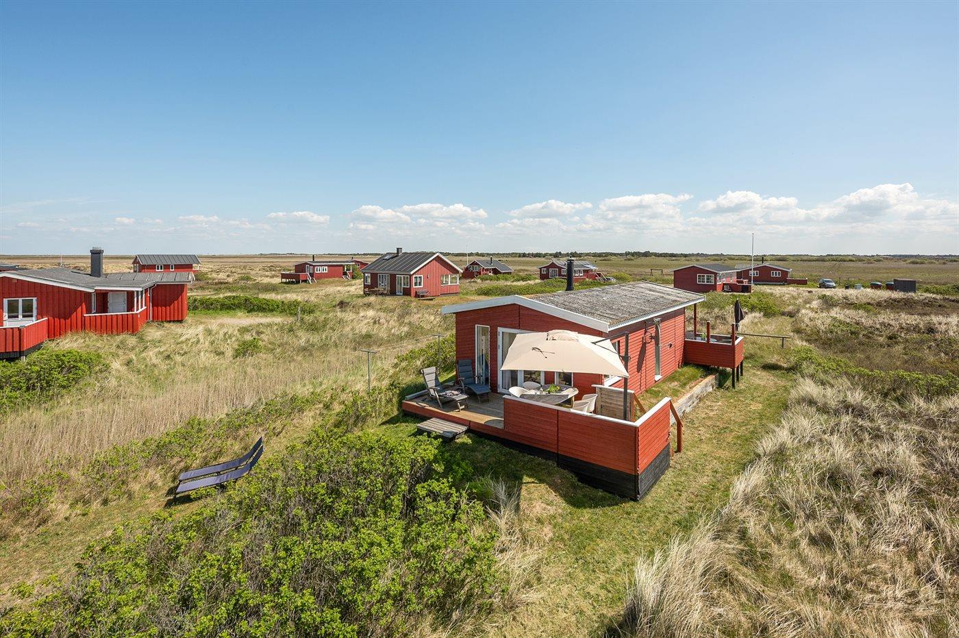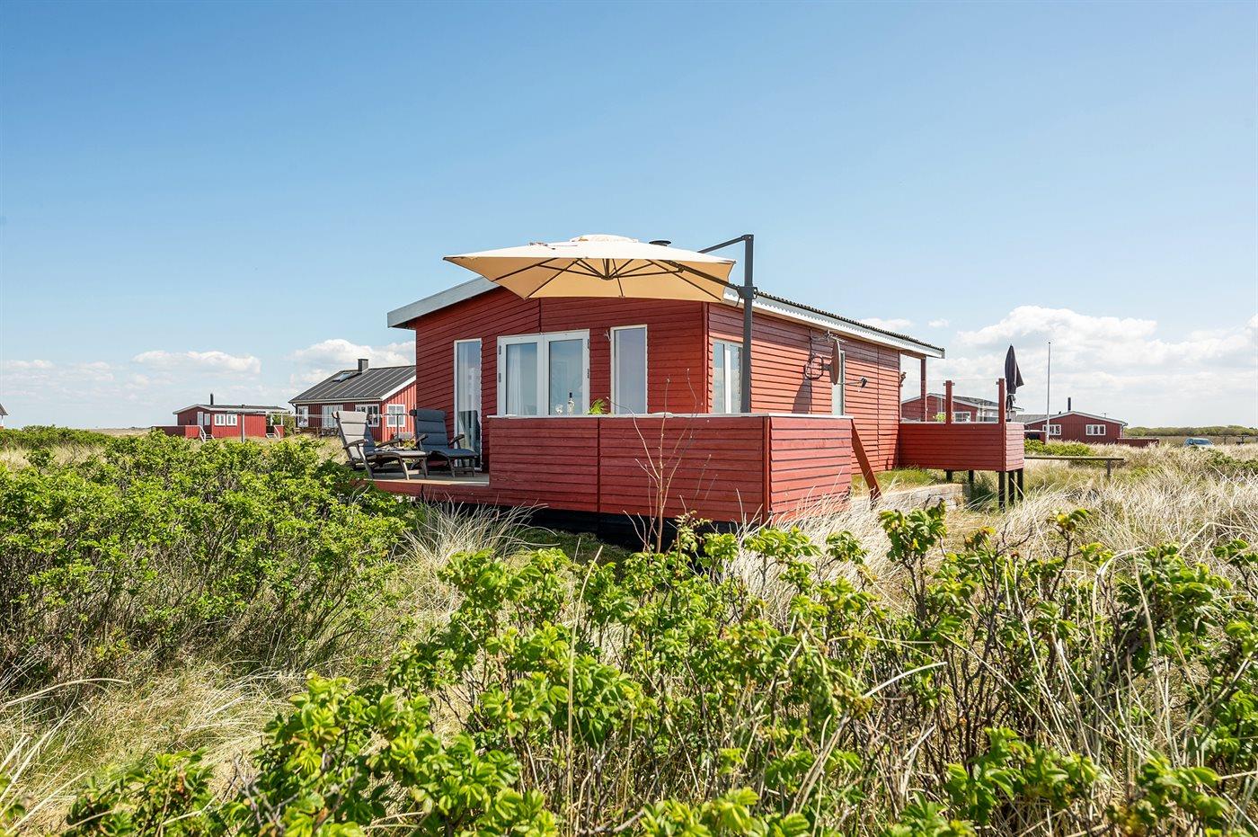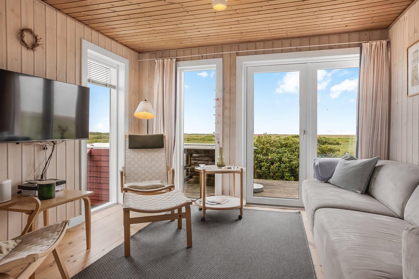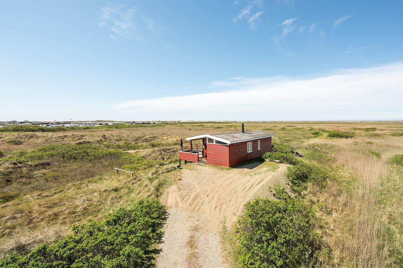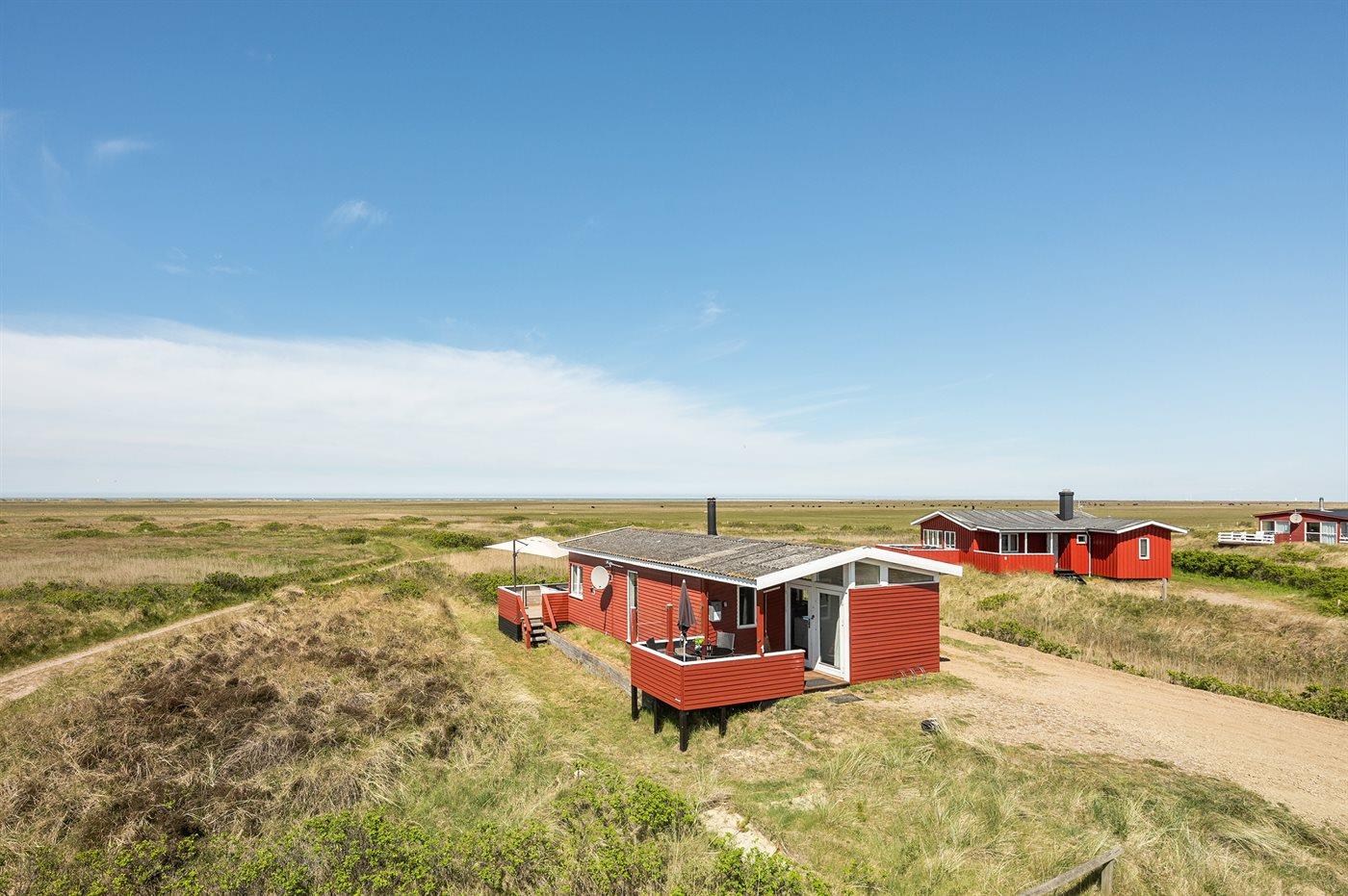 Dette dejlige, lille sommerhus i træ, bygget i 1950 og løbende renoveret, ligger på en kuperet naturgrund med en fantastisk, ugeneret udsigt over Vesterhavet. Til huset hører såvel åben som overdækket terrasse med havemøbler.