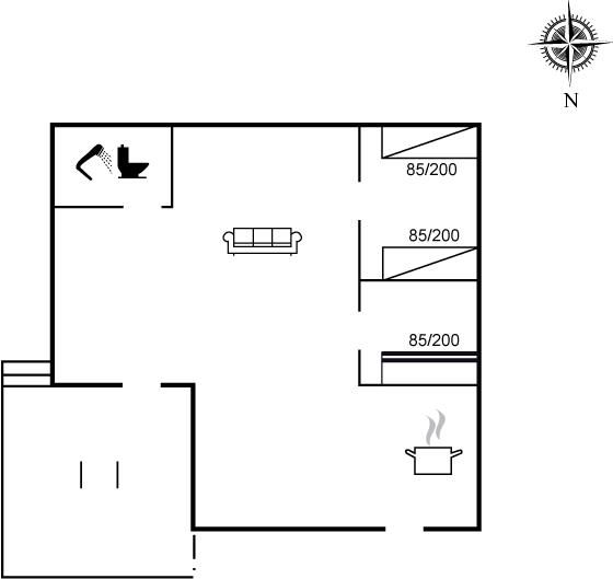 Der er 1 badeværelse med bruseniche og 1 toilet.
