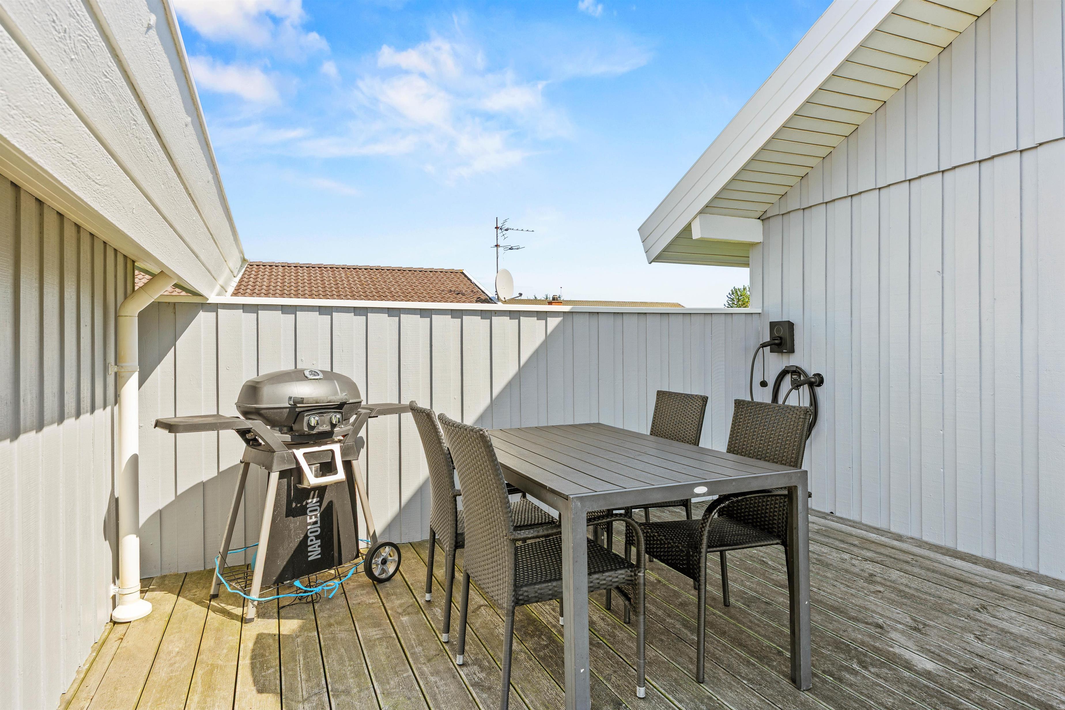 Med en rummelighed på 85 m2 byder sommerhuset på mange moderne bekvemmeligheder. Slap af i den luksuriøse tømmespa indendør spa, hvor der er plads til 2 personer. Den overdækkede terrasse er perfekt til grillmiddage, uanset vejret. Huset er også udstyret med en praktisk Airfryer, så I kan tilberede lette og lækre retter med minimal indsats. Hvis I ankommer i el-bil, er et ladestik tilgængeligt for jeres bekvemmelighed.