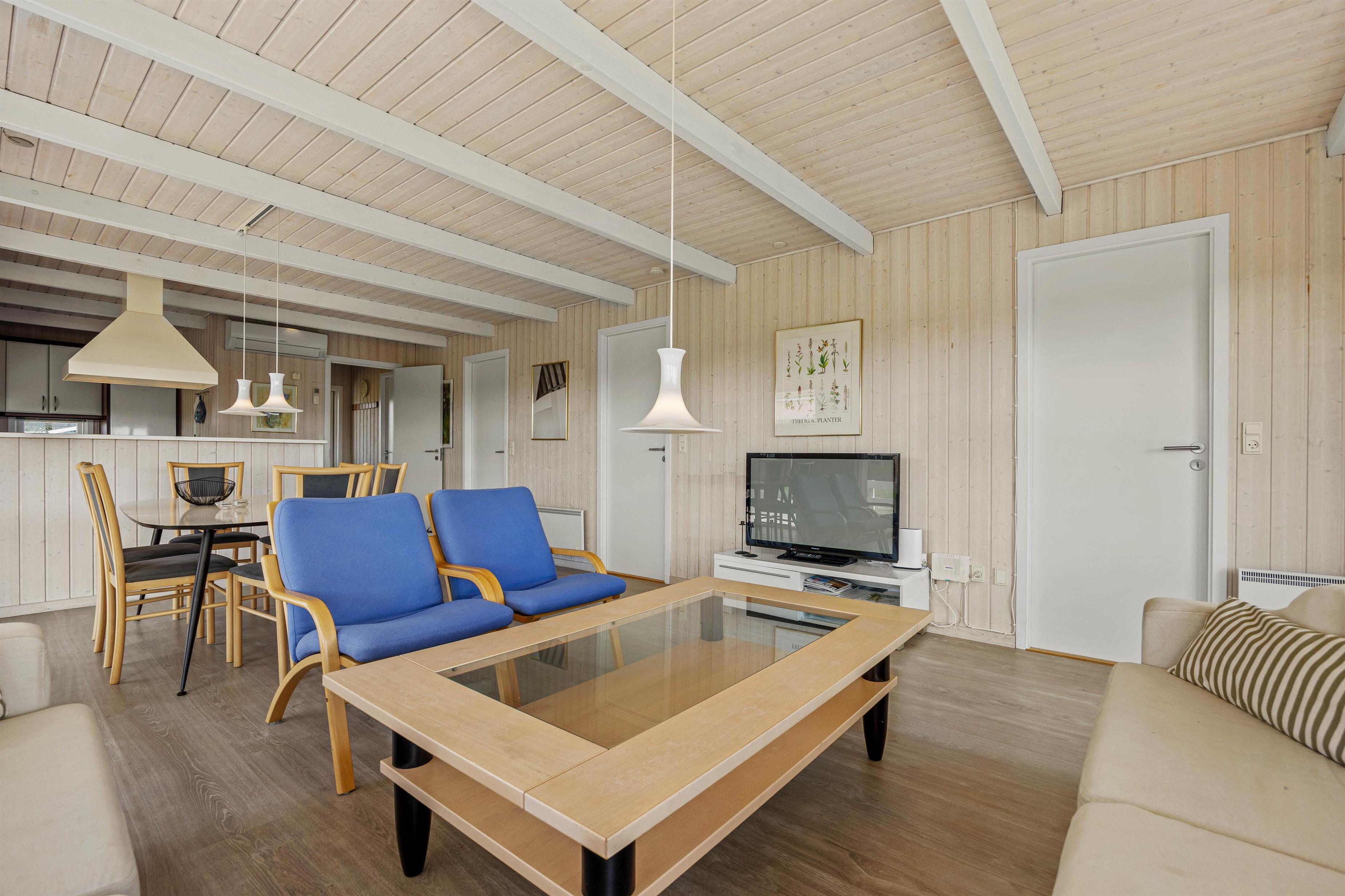 Sommerhuset byder på 3 dejlige soverum og kan komfortabelt huse op til 6 personer. Dette er det perfekte valg for både familier og grupper af venner, som ønsker at tilbringe tid sammen i hyggelige omgivelser. En luft til luft varmepumpe sikrer et behageligt miljø året rundt, mens en opvaskemaskine gør det nemt at nyde måltider uden at tænke på oprydningen bagefter. Sommerhuset er venligt overfor husdyr, så I behøver ikke lade jeres hund blive hjemme.