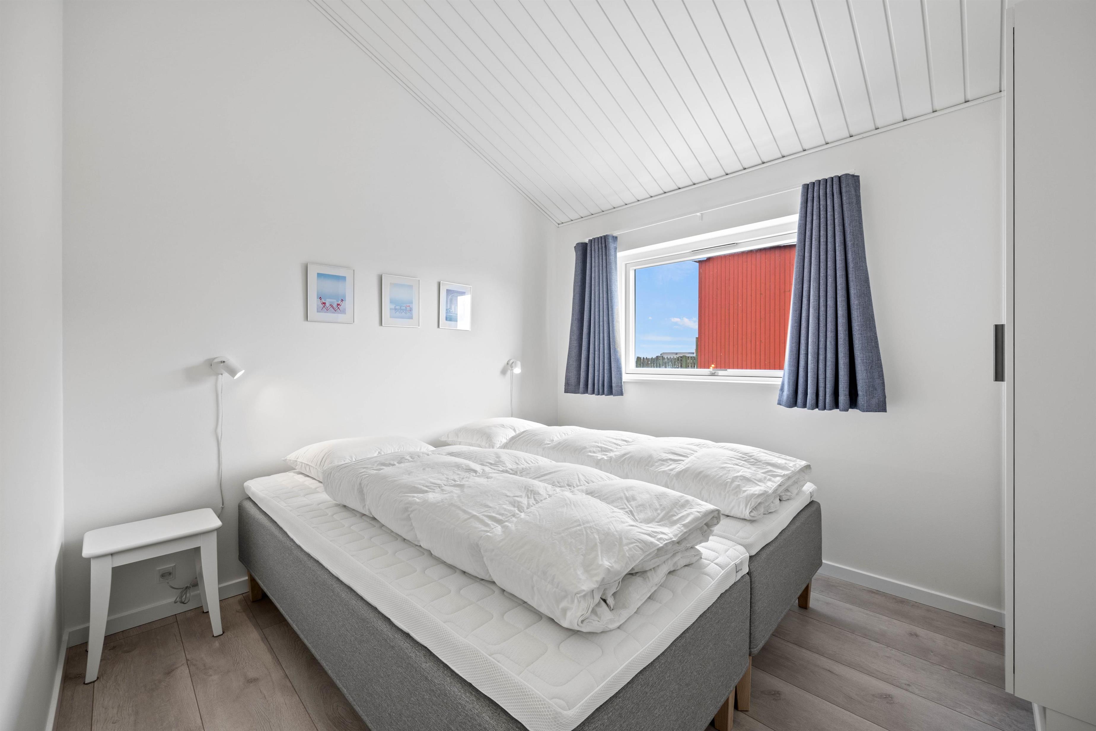 Sommerhuset er lyst og moderne indrettet, og sammen med de store vinduespartier i alrummet giver det en indbydende atmosfære i rummet. Den åbne planløsning giver jer mere tid sammen som familie, da I kan fortsætte snakken og hyggen, selvom nogle står for madlavningen, og andre slapper af på sofaen. Brændeovnen sætter prikken over i’et til den hyggelige feriestemning, og der er desuden en energibesparende varmepumpe i sommerhuset.