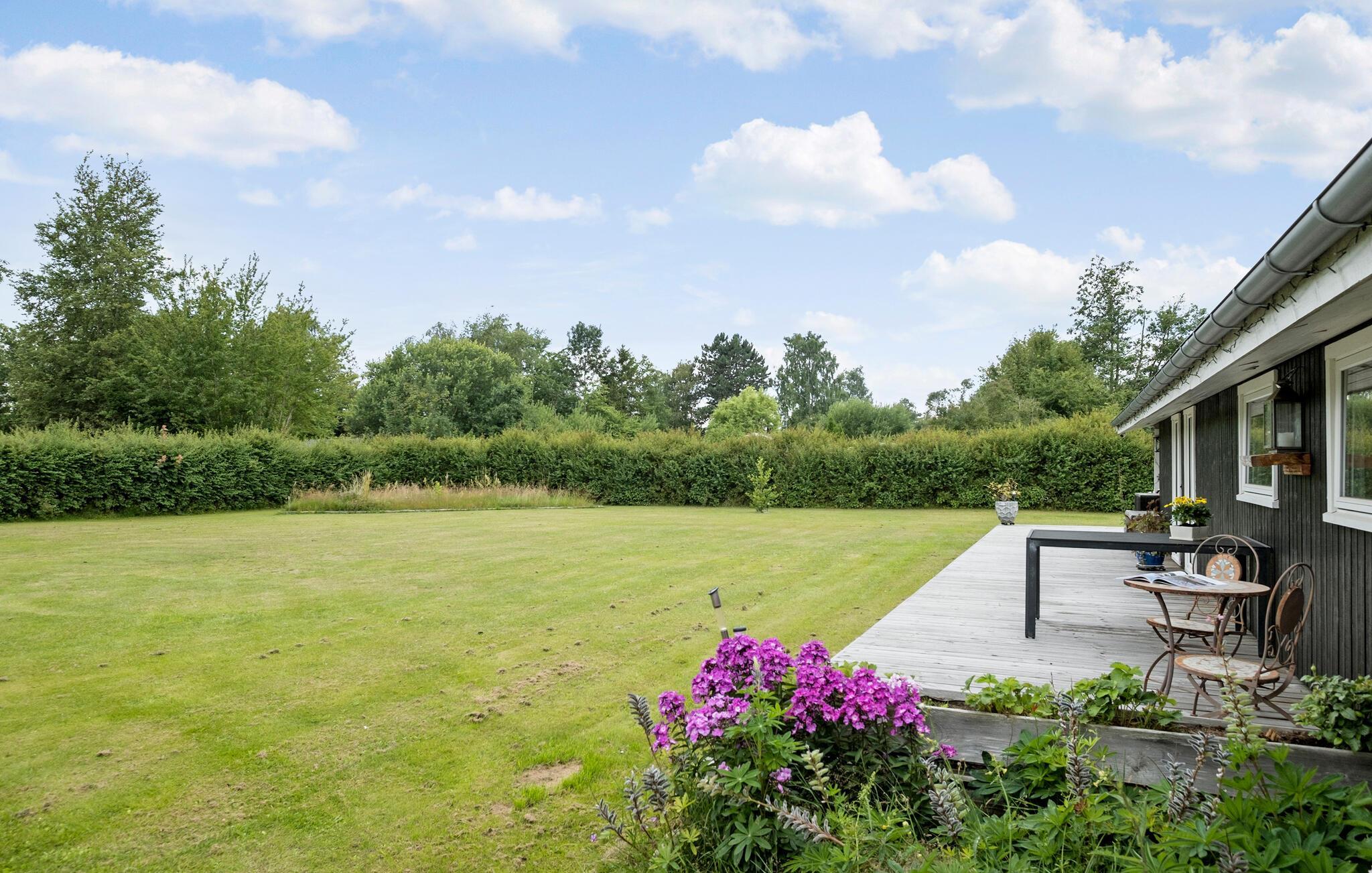 Terrassen er delvist overdækket, så her er der både sol og skygge på de varme sommerdage. Huset er omkranset af en velholdt, grøn have, som er skøn at kigge ud på fra stuen og terrassen. Slip børnene løs på den store grund, hvor de sikkert kan få masser af tid til at gå boldspil og gemmeleg.