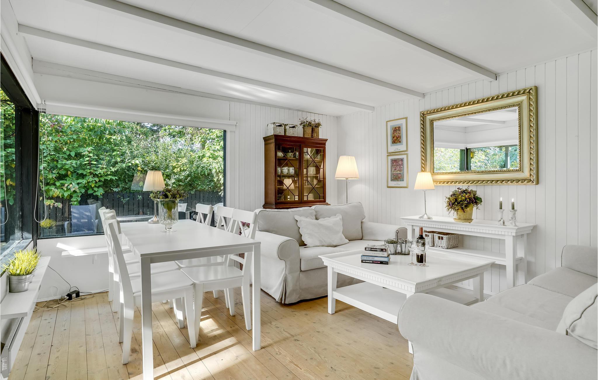 I et hyggeligt sommerhusområde ligger dette charmerende feriehus, der er indrettet med et personligt præg. Det åbne køkken ligger i forbindelse med stuen, hvorfra der er udgang til en lille overdækket terrasse. For enden af huset ligger en ugenert terrasse, hvor solen kan nydes hele dagen. I den hyggelige have er der god plads til leg og hygge. Huset ligger i gåafstand til Isefjorden og midt i den skønne natur. Tag enten jeres egen kano med til en spændende tur, eller tag Isefjorden rundt med ialt fire færger (køb samlet billet) og se de smukke landskaber fra vandsiden. Halvøen Hornsherred med byen Jægerspris byder på vidunderlig dansk natur med store skove, bølgende bakker og gode muligheder for vandreture på afmærkede ruter. På det smukke Jægerspris Slot er der dagligt rundvisning og i Nordskoven findes egetræer der er over 1000 år gamle. Købstaden Frederikssund er en hyggelig handelsby, hvor der hvert år afholdes et vikingespil, hvor man efterfølgende kan komme til taffel med god mad og underholdning i Valhal. For golfentusiaster ligger en 18-hullers golfbane i byen. Der er ca. 50 km til København med utallige seværdigheder og aktiviteter; deriblandt Tivoli, Zoologisk Have, Planetariet, Eksperimentariet og de mange spændende museer.