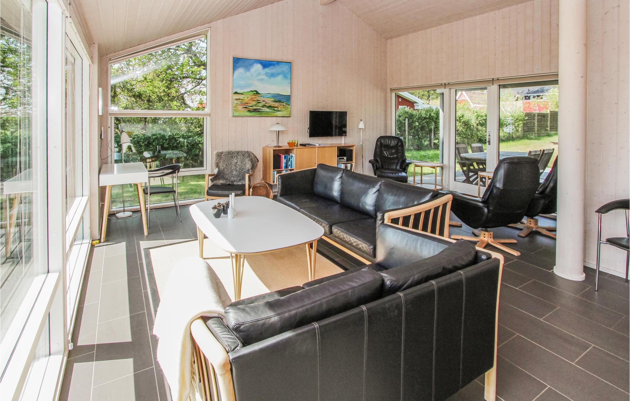 Huset, der ligger idyllisk ved havet, fortryller med sin lyse og smagfulde indretning. Da næsten hele den ene side af stuen består af vinduer, kommer der ikke kun masser af dagslys ind i huset, men I har også en vidunderlig udsigt over engene til havet. Sauna og boblebad byder på behagelig afslapning efter lange dage med udflugter på øen.