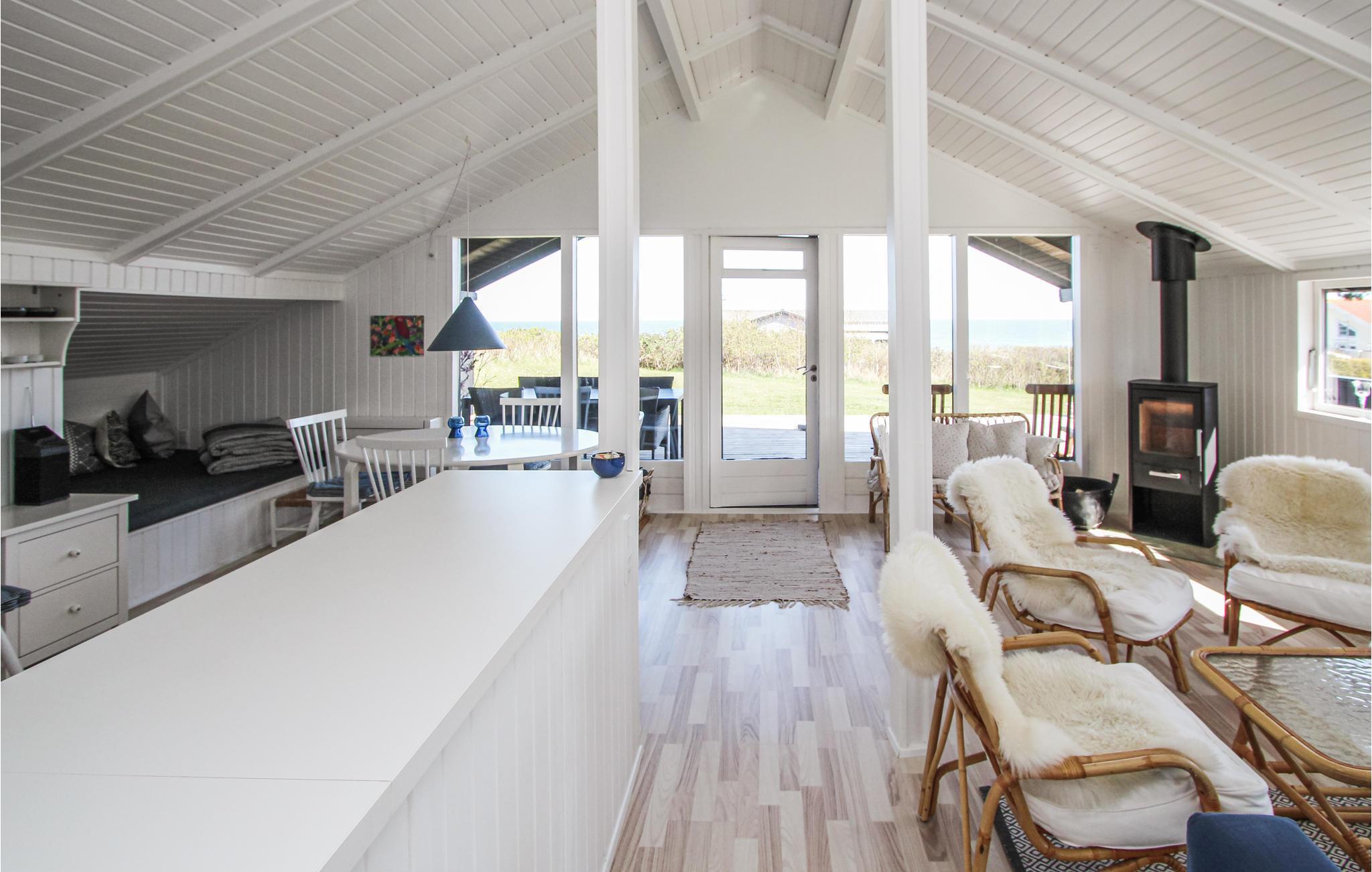 Find jer godt til rette med venner eller familie i dette yderst indbydende hus, som fortryller med store panoramavinduer, udsigt over havet og et charmerende og lyst interiør i landlig stil. Uanset om det er et hvil i den hyggelige alkove, en kop te ved brændeovnen eller tilberedning af lækre feriemåltider sammen, vil I have rig mulighed for at tilbringe en afslappende tid sammen. Nyd jeres måltider i det fri på terrassen med en betagende kulisse som baggrund.