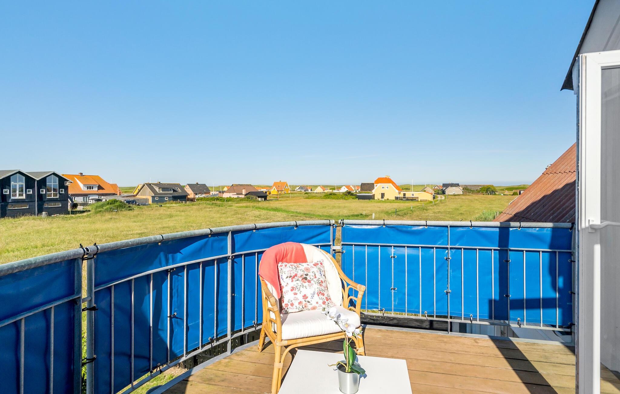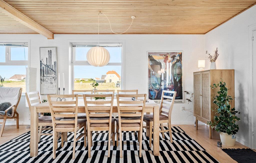 Hold en dejlig ferie i dette charmerende sommerhus, som er lyst og rummeligt - helt oplagt til den store familie. Kom væk fra hverdagens trummerum og nyd freden og den skønne natur på vestkysten. Huset er hyggeligt indrettet og har et skønt og rummeligt udendørsområde. Terrassen er det ideelle sted at begynde dagene med morgenmad i den friske havluft eller afslutte jeres aften med en lækker middag. I kan også bruge altanen til at nyde panoramaudsigten over landskabet.