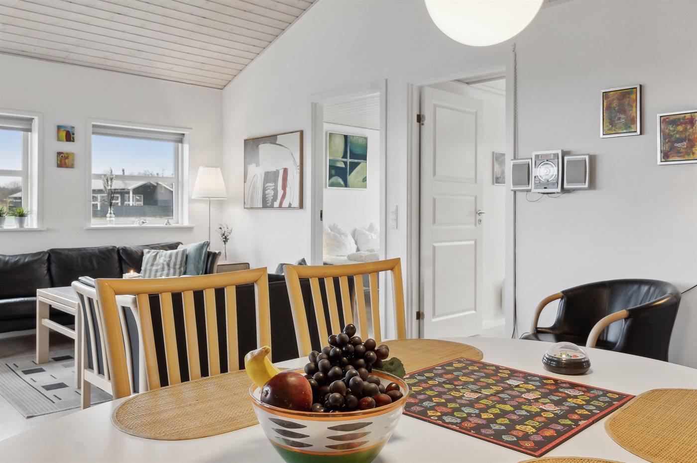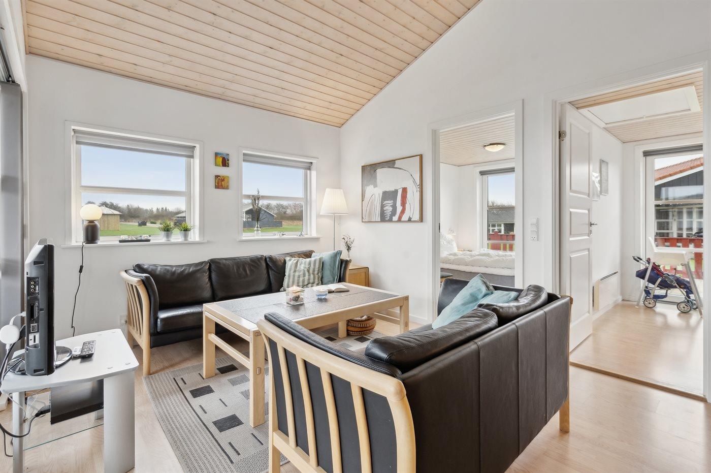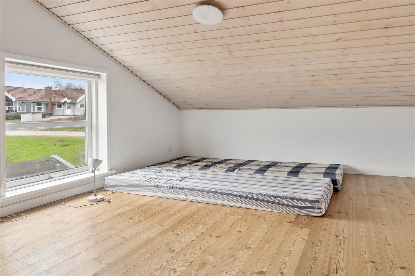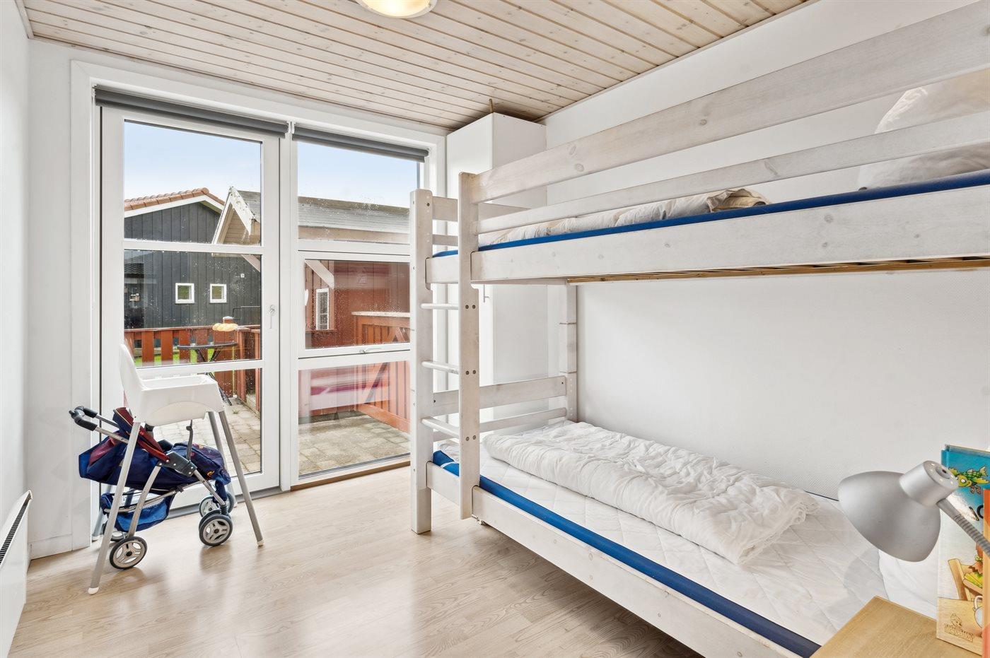 Der er i alt 3 soveværelser. Sovepladserne fordeler sig på: 4 sovepladser i dobbeltsenge. 2 sovepladser i køjeseng. Derudover er der 1 stk. barneseng.