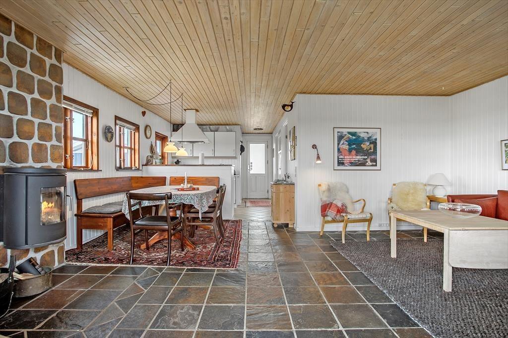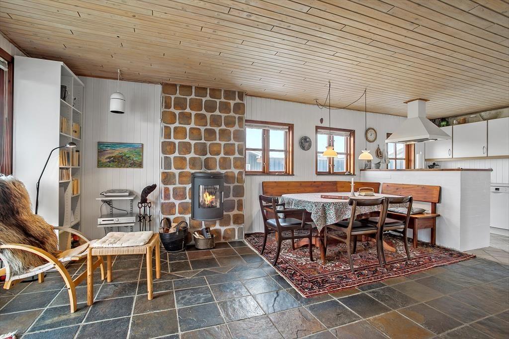 Med så smukke og uforstyrrede omgivelser kan feriedagene oplagt foregå ude under den høje himmel. Men der er nu også god grund til at slappe af inden døre, for sommerhuset har en charmerende og personlig indretning, som giver en skøn atmosfære. Er vejret køligt, kan I tænde op i brændeovnen lige fra morgenstunden, mens I forbereder dagens første måltid i det åbne køkken. Vil I hygge jer med en god bog eller avisen, er der flere gode siddepladser at vælge imellem – og selvom der ikke er TV, kan I takket være en hurtig wifi-forbindelse stadig se nyheder eller jeres yndlingsserie, hvis I blot medbringer en laptop eller tablet. Udover opholdsrummet finder I et pænt badeværelse og tre gode soveværelser med seks sovepladser i huset, og så er der endda en ekstra dobbeltseng og en barneseng i det tilstødende anneks.