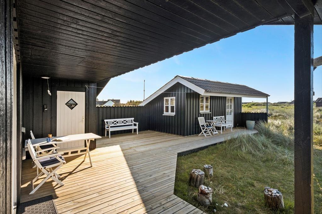 Bare omgivelserne, udsigten og det skønne terrassemiljø, er grund nok til at vælge dette sommerhus i Lild Strand. Huset er beliggende kun 215 meter fra Vesterhavet og når I nyder freden og solskinnet på terrasserne, kan I skue ud over den vidtstrakte klithede og se Lild Klitplantage i det fjerne.