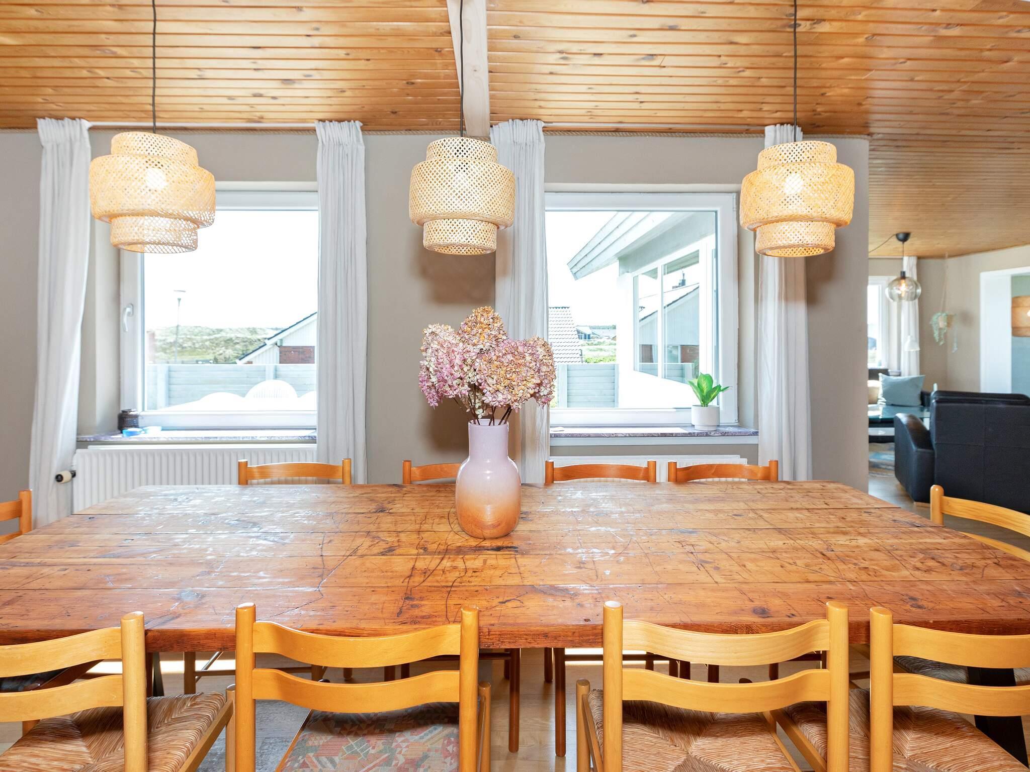 Dette smukt renoverede feriehus ligger på en klitgrund med delvis udsigt over Vesterhavet og byder på fredfyldte og naturskønne omgivelser for en afslappende ferie. Fra den glaserede terrasse kan gæsterne nyde en fantastisk udsigt over havet og betagende solnedgange. På køligere aftener skaber den hyggelige brændeovn i den rummelige opholdsstue en varm og indbydende atmosfære. Det åbne køkken har en spiseplads, hvilket gør det til et ideelt sted for familiemåltider og sociale sammenkomster.