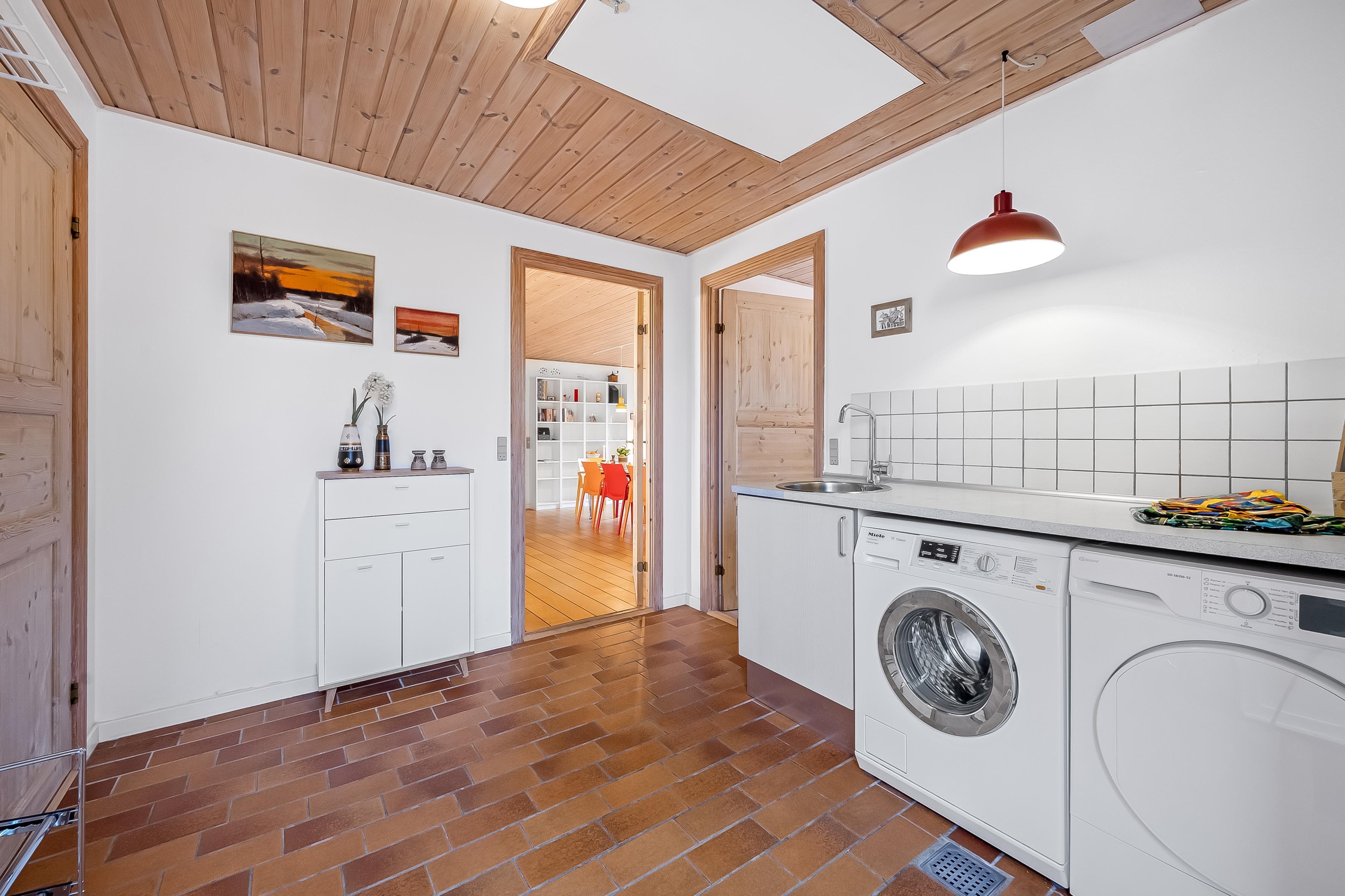 Indendørs er huset udstyret med moderne faciliteter, herunder en mikrobølgeovn, ovn, keramisk komfur, opvaskemaskine, vaskemaskine og tørretumbler, så du kan føle dig hjemme, selv når du er væk. Køkkenet er rummeligt og funktionelt, hvilket gør det nemt at forberede lækre måltider til familien. Der er også et køleskab med fryser, der har en kapacitet på 100 liter, så du kan opbevare alle dine madvarer og drikkevarer.