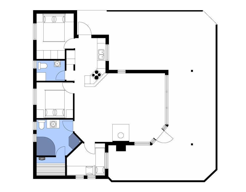 I dette sommerhus er der plads til hyggelige stunder med familien. Det åbne køkken ligger i direkte forbindelse med opholdsstuen, hvor der både er spiseplads til fælles måltider eller hygge med brætspil og en hyggelig sofagruppe til afslapning og samvær foran fjernsynet eller med en god bog. Fra stuen er der direkte udgang til en delvist overdækket terrasse, hvor I kan nyde morgenkaffen eller aftensolen, uanset vejret.