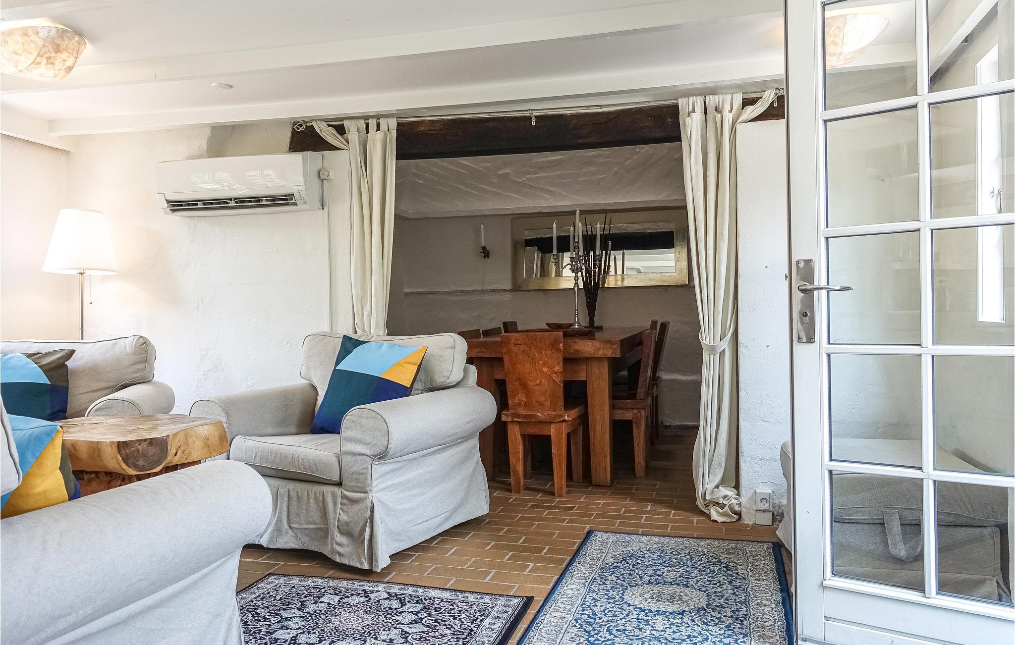 Her får I muligheden for at bo i en pragtfuld bygning i to plan, der tidligere fungerede som røgeri og blev istandsat i 2020. Her får I en dejlig base for et ophold uanset årstid. Overalt venter der lækre detaljer, som understreger husets kvalitet og blander nyt med gammelt på smagfuld vis. I stuen kan I få varmen foran brændeovnen efter en lang gåtur og nyde dagens måltider i den stemningsfulde gamle røgeskorsten. Annekset byder på en dobbeltseng og et toilet.